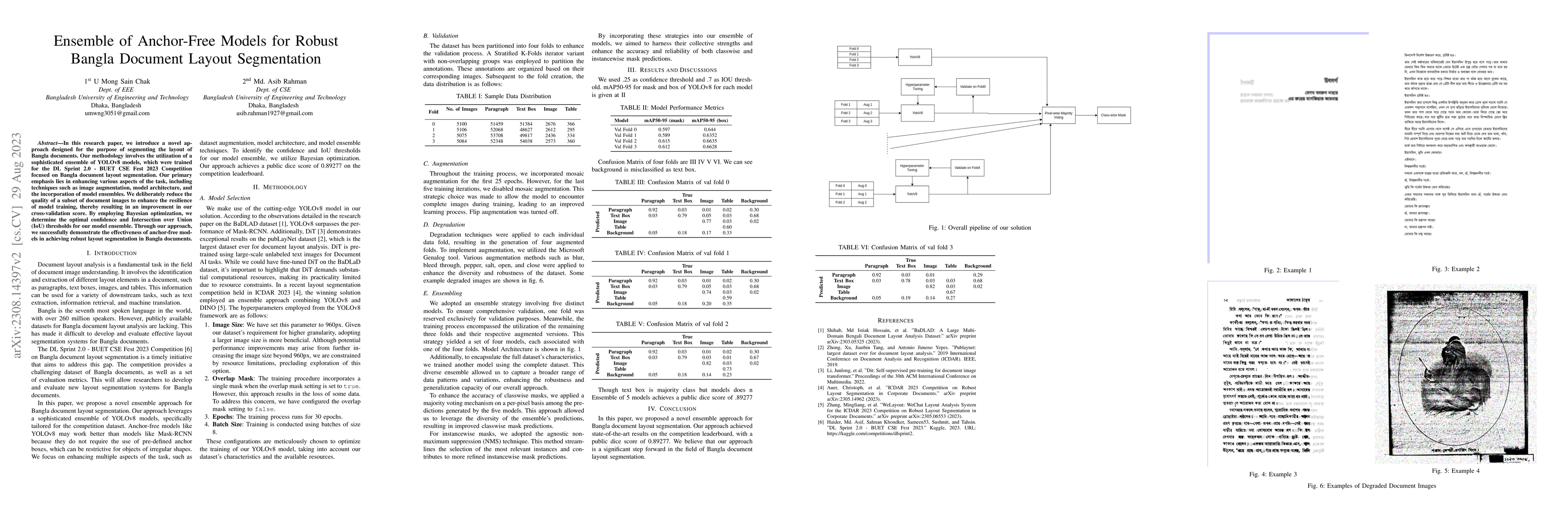 In this research paper, we introduce a novel approach designed for the purpose of segmenting the layout of Bangla documents. Our methodology involves the utilization of a sophisticated ensemble of YOLOv8 models, which were trained for the DL Sprint 2.0 - BUET CSE Fest 2023 Competition focused on Bangla document layout segmentation. Our primary emphasis lies in enhancing various aspects of the task, including techniques such as image augmentation, model architecture, and the incorporation of model ensembles. We deliberately reduce the quality of a subset of document images to enhance the resilience of model training, thereby resulting in an improvement in our cross-validation score. By employing Bayesian optimization, we determine the optimal confidence and Intersection over Union (IoU) thresholds for our model ensemble. Through our approach, we successfully demonstrate the effectiveness of anchor-free models in achieving robust layout segmentation in Bangla documents.