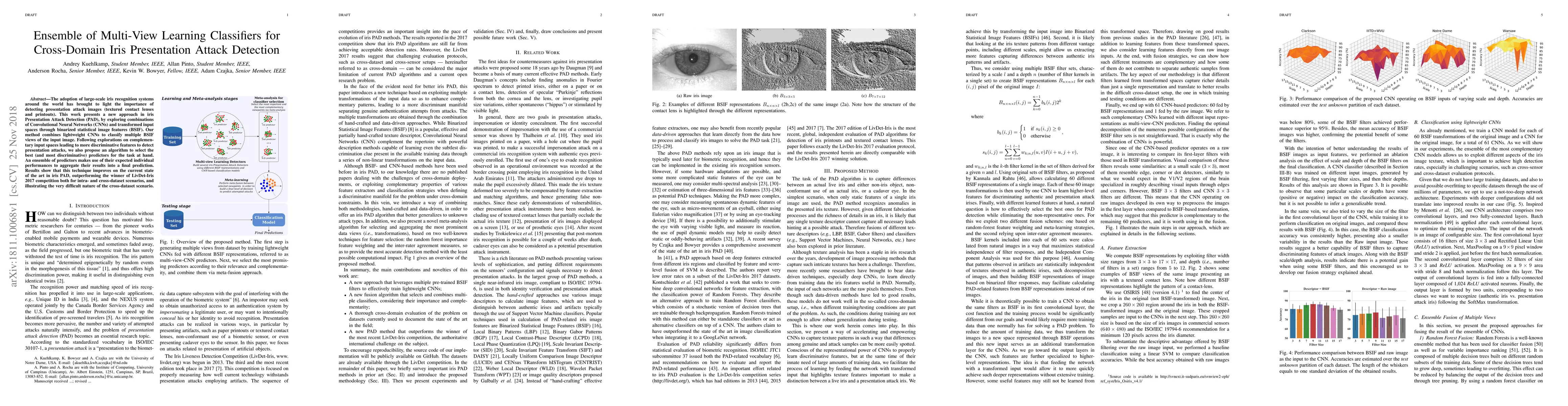 This paper proposes an ensemble of multi-view learning classifiers combining lightweight CNNs and binarized statistical image features (BSIF) for iris Presentation Attack Detection (PAD). The method outperforms current state-of-the-art techniques, especially in challenging cross-dataset scenarios.