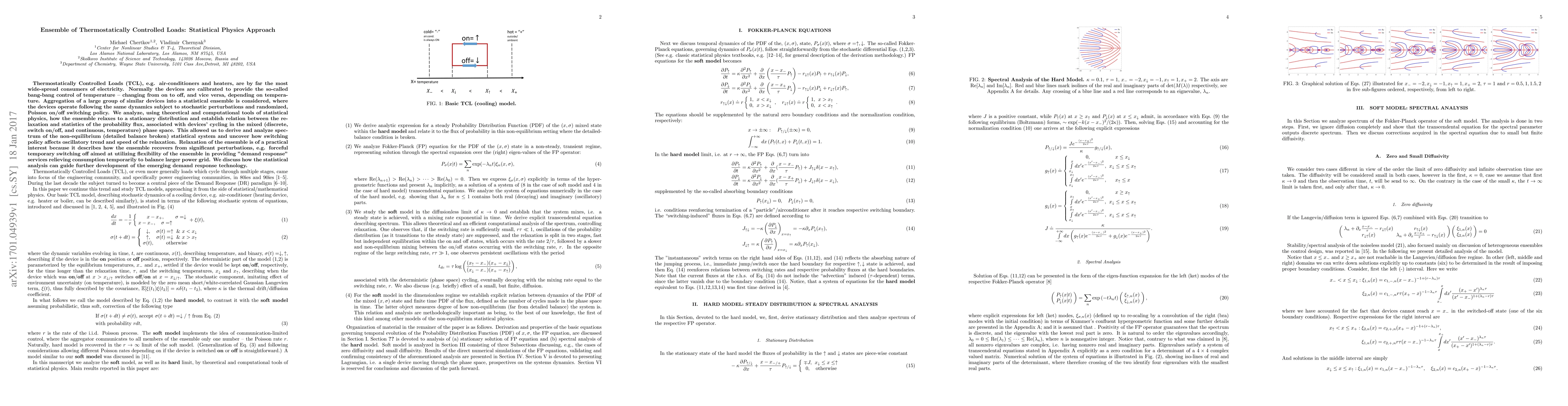This paper investigates the statistical physics of an ensemble of thermostatically controlled loads (TCLs) like air-conditioners, analyzing how they collectively relax to a stationary distribution after perturbations. The study uses theoretical and computational tools to explore the impact of stochastic perturbations and randomized switching policies on the relaxation dynamics and the associated probability flux.