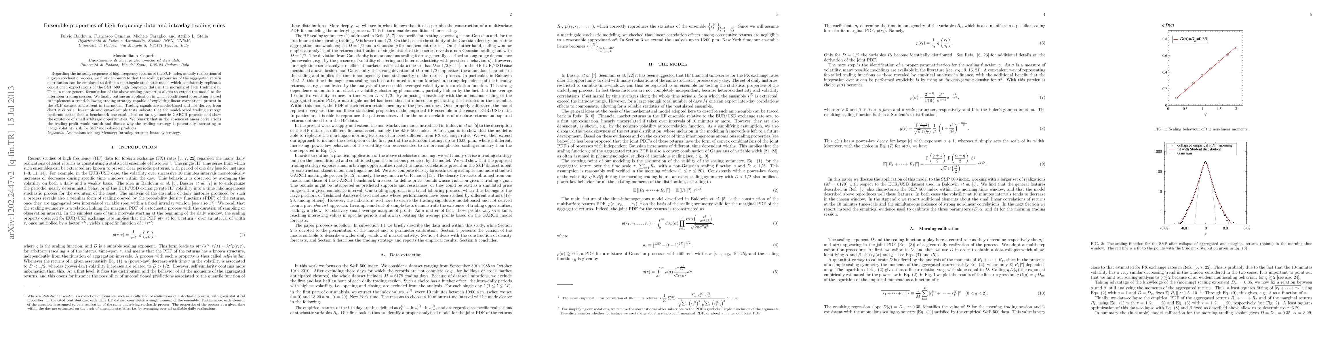 Regarding the intraday sequence of high frequency returns of the S&P index as daily realizations of a given stochastic process, we first demonstrate that the scaling properties of the aggregated return distribution can be employed to define a martingale stochastic model which consistently replicates conditioned expectations of the S&P 500 high frequency data in the morning of each trading day. Then, a more general formulation of the above scaling properties allows to extend the model to the afternoon trading session. We finally outline an application in which conditioned forecasting is used to implement a trend-following trading strategy capable of exploiting linear correlations present in the S&P dataset and absent in the model. Trading signals are model-based and not derived from chartist criteria. In-sample and out-of-sample tests indicate that the model-based trading strategy performs better than a benchmark one established on an asymmetric GARCH process, and show the existence of small arbitrage opportunities. We remark that in the absence of linear correlations the trading profit would vanish and discuss why the trading strategy is potentially interesting to hedge volatility risk for S&P index-based products.