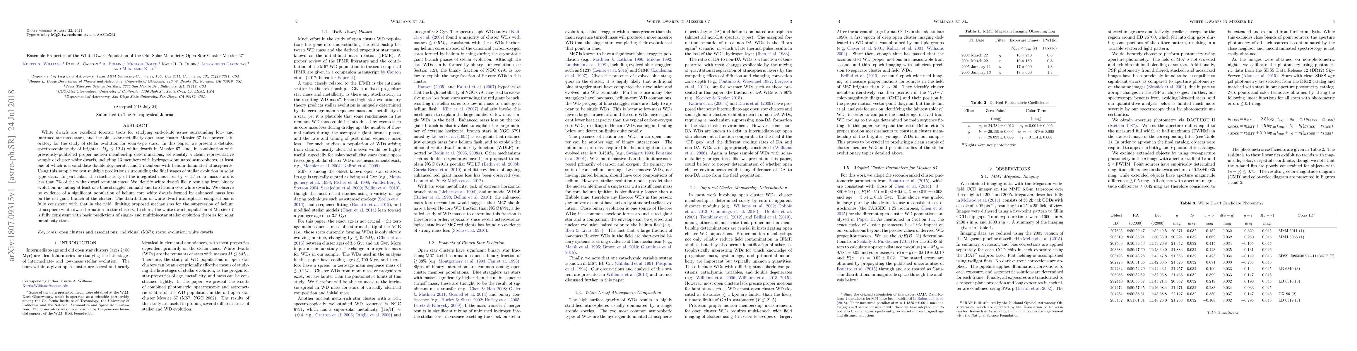 White dwarfs are excellent forensic tools for studying end-of-life issues surrounding low- and intermediate-mass stars, and the old, solar-metallicity open star cluster Messier 67 is a proven laboratory for the study of stellar evolution for solar-type stars. In this paper, we present a detailed spectroscopic study of brighter (M_g < 12.4) white dwarfs in Messier 67, and, in combination with previously-published proper motion membership determinations, we identify a clean, representative sample of cluster white dwarfs, including 13 members with hydrogen-dominated atmospheres, at least one of which is a candidate double degenerate, and 5 members with helium-dominated atmospheres. Using this sample we test multiple predictions surrounding the final stages of stellar evolution in solar type stars. In particular, the stochasticity of the integrated mass lost by ~1.5 solar mass stars is less than 7% of the white dwarf remnant mass. We identify white dwarfs likely resulting from binary evolution, including at least one blue straggler remnant and two helium core white dwarfs. We observe no evidence of a significant population of helium core white dwarfs formed by enhanced mass loss on the red giant branch of the cluster. The distribution of white dwarf atmospheric compositions is fully consistent with that in the field, limiting proposed mechanisms for the suppression of helium atmosphere white dwarf formation in star clusters. In short, the white dwarf population of Messier 67 is fully consistent with basic predictions of single- and multiple-star stellar evolution theories for solar metallicity stars.