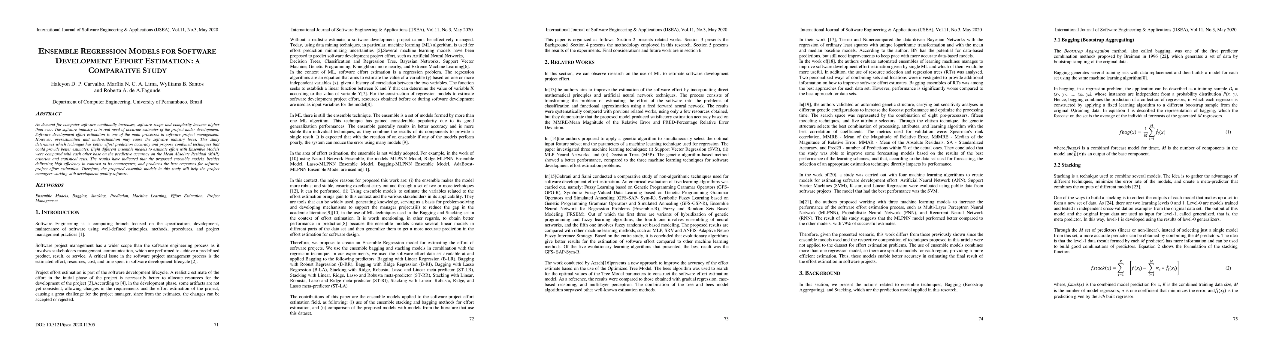 This study compares eight ensemble regression models for software development effort estimation, finding that the ensemble techniques outperform individual models in accuracy based on Mean Absolute Residual (MAR) and statistical tests. The proposed ensemble models offer improved efficiency and better predictions, aiding project managers in delivering high-quality software.