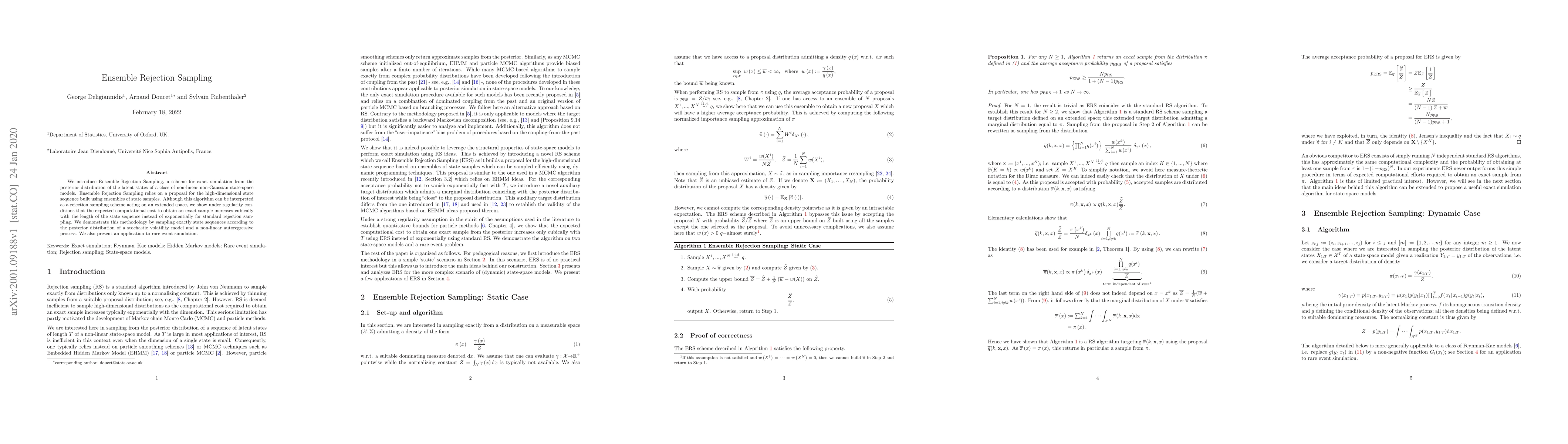 Ensemble Rejection Sampling is a novel method for exact posterior simulation in non-linear non-Gaussian state-space models, offering cubic growth in computational cost relative to standard rejection sampling. Demonstrated through stochastic volatility and non-linear autoregressive processes, it also shows potential for rare event simulation.