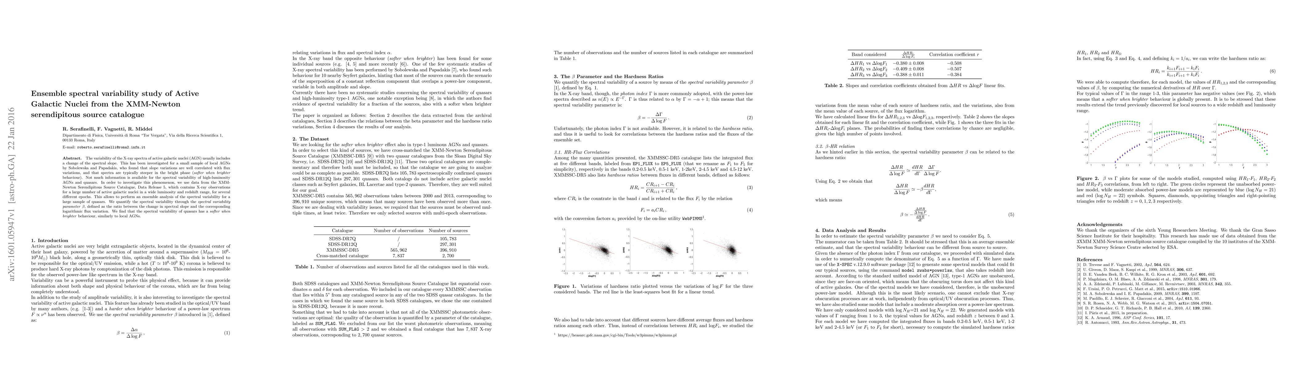This study uses XMM-Newton data to analyze the spectral variability of a large ensemble of quasars, finding that they exhibit a "softer when brighter" behavior, consistent with local active galactic nuclei. The spectral variability parameter $\beta$ reveals significant correlation between spectral slope changes and flux variations.