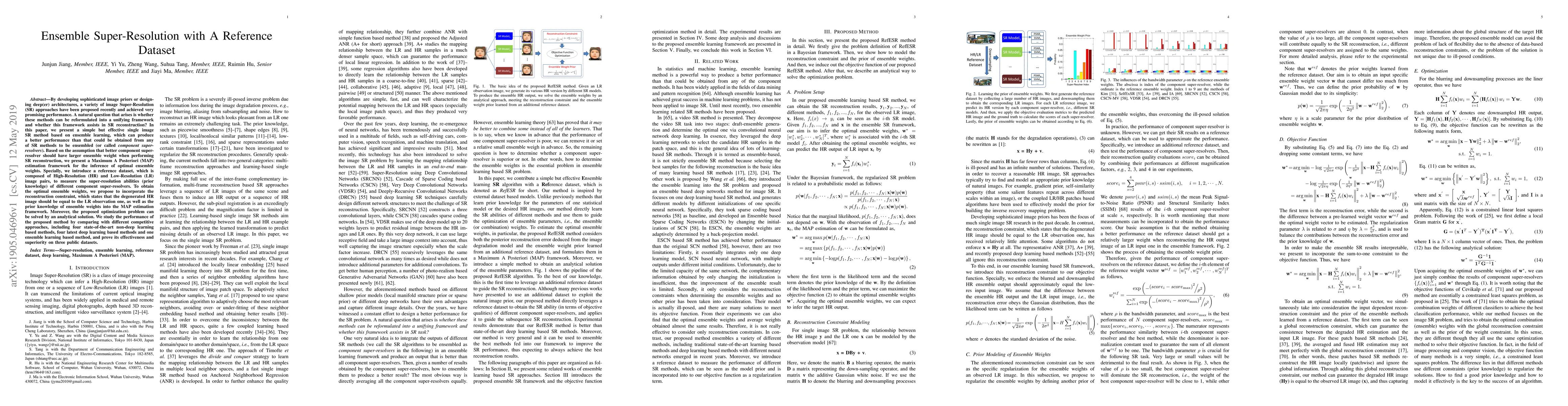 This paper proposes an ensemble learning-based super-resolution method that outperforms individual super-resolution techniques by optimally weighting component methods using a Maximum A Posteriori estimation framework. A reference dataset is introduced to assess component methods, and an analytical solution is derived to determine optimal ensemble weights.