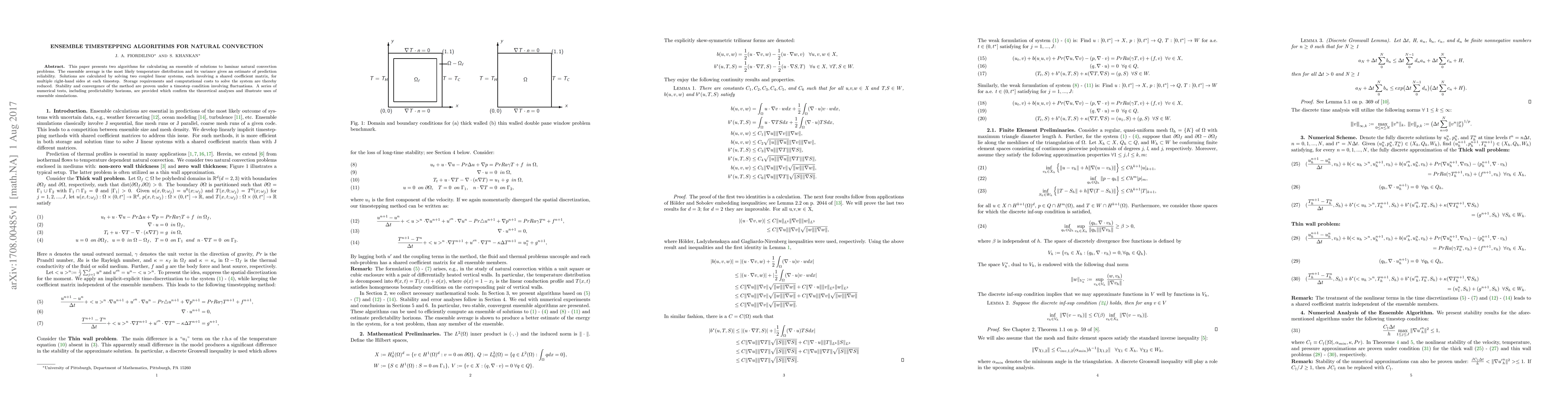 This paper presents two algorithms for calculating an ensemble of solutions to laminar natural convection problems. The ensemble average is the most likely temperature distribution and its variance gives an estimate of prediction reliability. Solutions are calculated by solving two coupled linear systems, each involving a shared coefficient matrix, for multiple right-hand sides at each timestep. Storage requirements and computational costs to solve the system are thereby reduced. Stability and convergence of the method are proven under a timestep condition involving fluctuations. A series of numerical tests, including predictability horizons, are provided which confirm the theoretical analyses and illustrate uses of ensemble simulations.