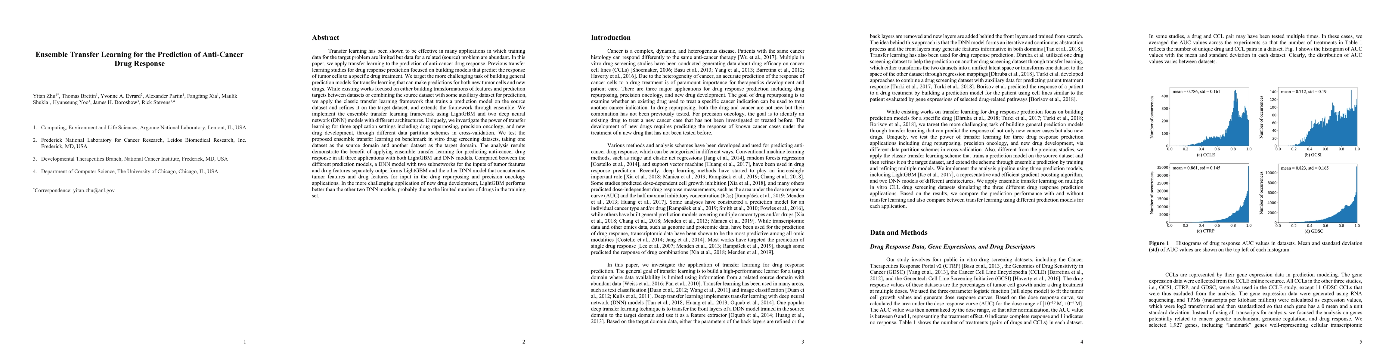 This paper proposes an ensemble transfer learning method using LightGBM and deep neural networks to predict anti-cancer drug response, focusing on generalizable models for new tumor cells and drugs. The ensemble approach outperforms individual models across drug repurposing, precision oncology, and new drug development applications, with specific architectures showing better performance in different settings.