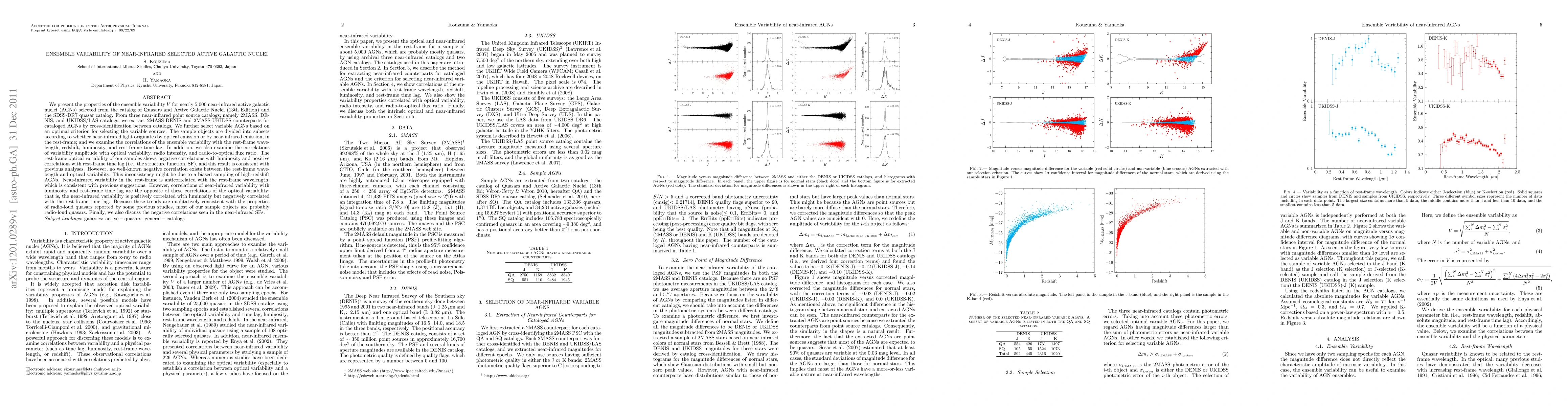 This paper investigates the ensemble variability of nearly 5000 near-infrared-selected active galactic nuclei (AGNs) and finds that NIR variability correlates positively with luminosity and inversely with rest-frame time lag, suggesting most objects are radio-loud quasars. The study also notes inconsistencies in optical variability correlations, potentially due to high-redshift AGN sampling biases.