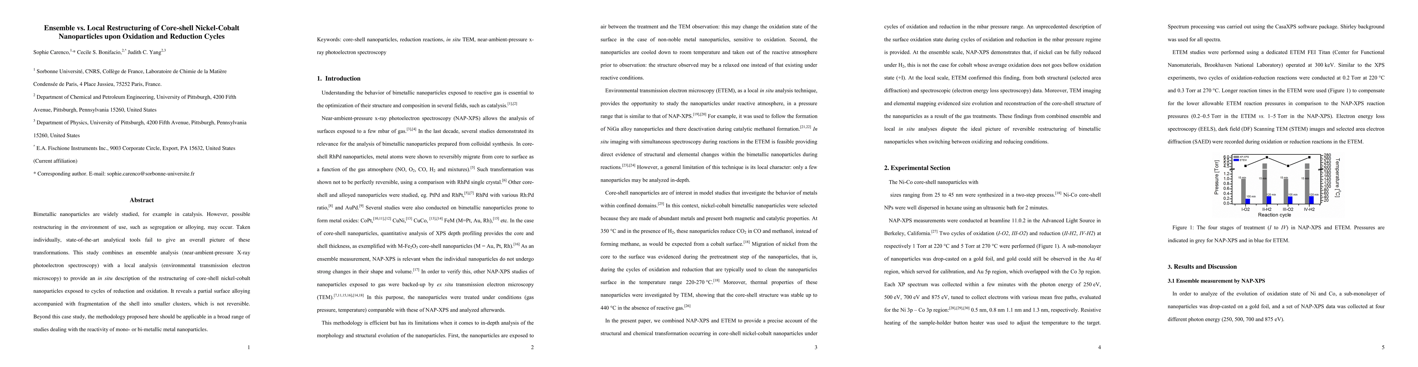 This study combines ensemble and local analysis techniques to investigate the restructuring of core-shell nickel-cobalt nanoparticles during oxidation and reduction cycles, revealing irreversible partial surface alloying and fragmentation. The methodology can be applied broadly to understand the reactivity of metal nanoparticles.