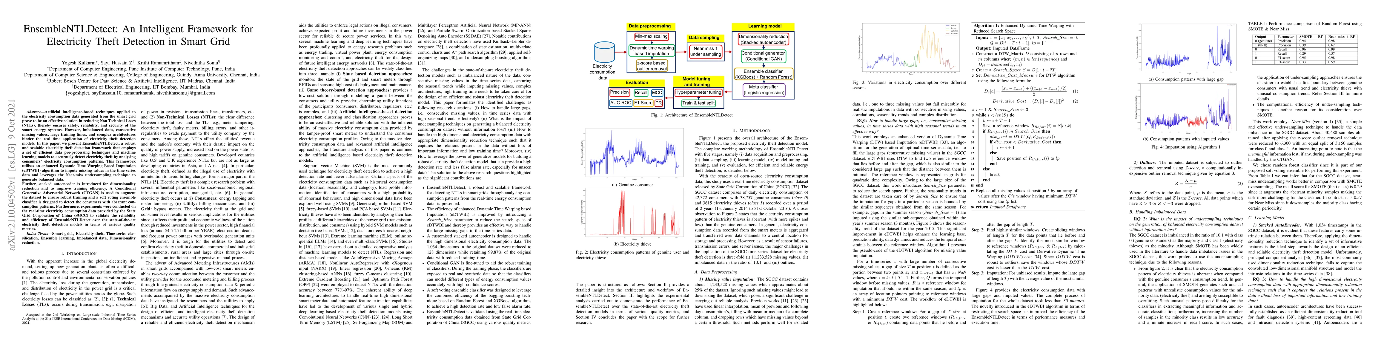 EnsembleNTLDetect is an advanced framework for detecting electricity theft in smart grids using AI, addressing challenges like imbalanced data and missing values. It employs techniques like eDTWBI for imputation, near-miss undersampling for balancing, and a CTGAN for data augmentation, culminating in an effective ensemble classifier for accurate detection.