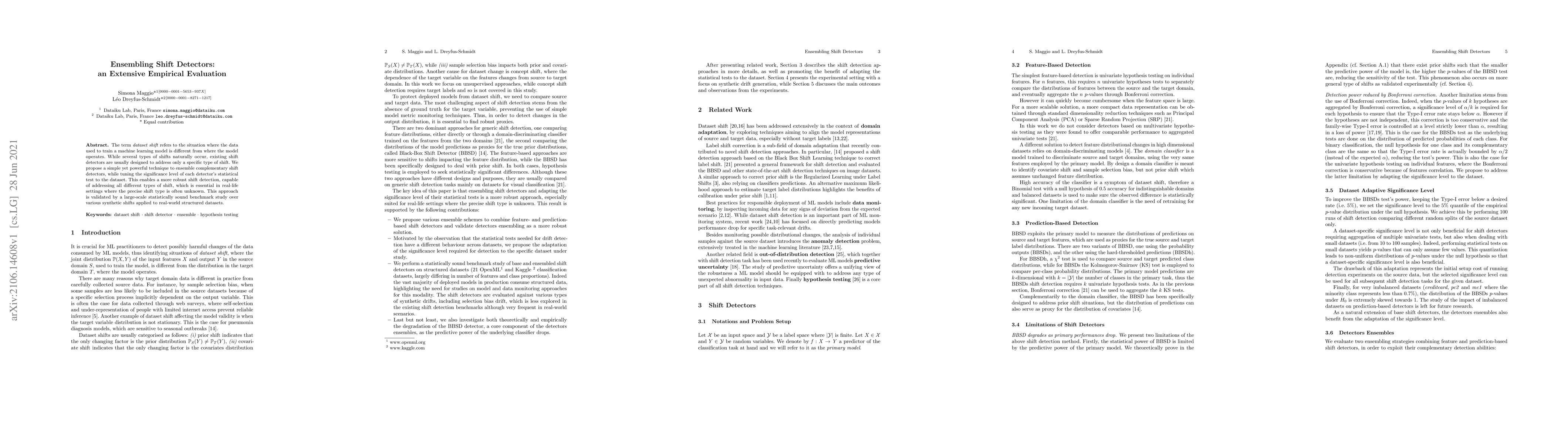 The term dataset shift refers to the situation where the data used to train a machine learning model is different from where the model operates. While several types of shifts naturally occur, existing shift detectors are usually designed to address only a specific type of shift. We propose a simple yet powerful technique to ensemble complementary shift detectors, while tuning the significance level of each detector's statistical test to the dataset. This enables a more robust shift detection, capable of addressing all different types of shift, which is essential in real-life settings where the precise shift type is often unknown. This approach is validated by a large-scale statistically sound benchmark study over various synthetic shifts applied to real-world structured datasets.