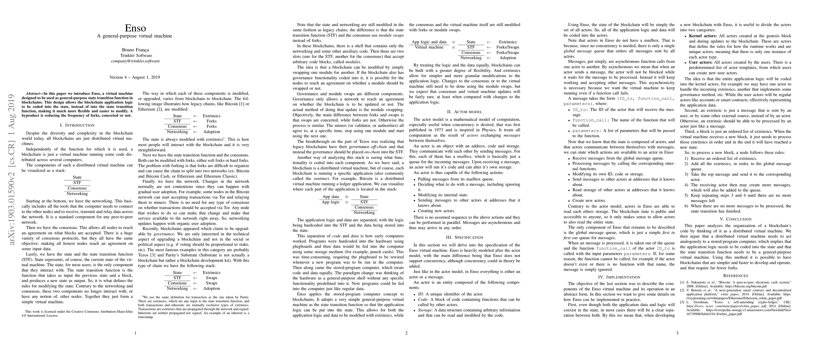 Enso introduces a virtual machine for blockchains that decouples application logic from state transition, reducing forks and making it easier to modify the blockchain.