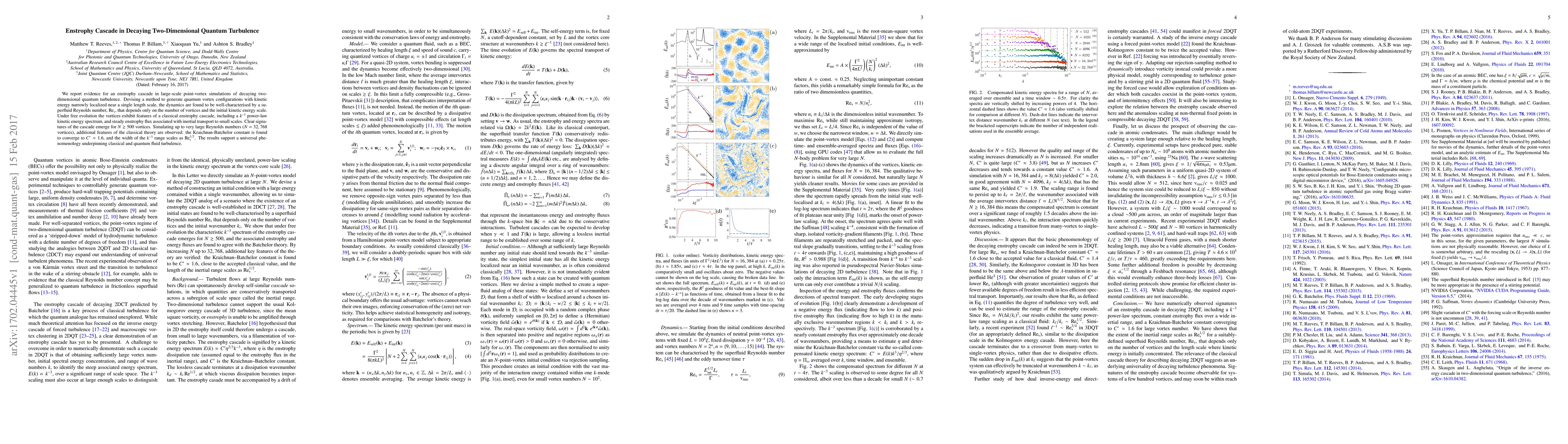 This paper presents evidence for an enstrophy cascade in decaying two-dimensional quantum turbulence, characterized by a superfluid Reynolds number dependent on vortex count and initial energy scale. Simulations reveal classical cascade features, including a $k^{-3}$ kinetic energy spectrum and a steady enstrophy flux, supporting a universal turbulence phenomenology.