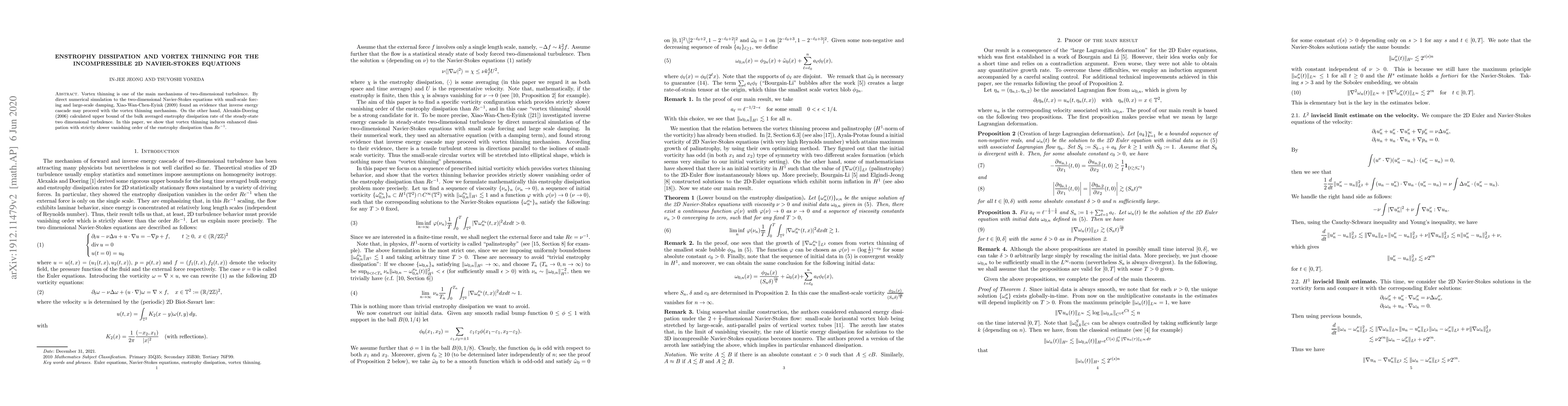 By direct numerical simulation to the two-dimensional Navier-Stokes equations with small-scale forcing and large-scale damping, Xiao-Wan-Chen-Eyink (2009) found an evidence that inverse energy cascade may proceed with the vortex thinning mechanism. On the other hand, Alexakis-Doering (2006) calculated upper bound of the bulk averaged enstrophy dissipation rate of the steady-state two dimensional turbulence. {In this paper, we show that vortex thinning induces enhanced dissipation with strictly slower vanishing order of the enstrophy dissipation than $Re^{-1}$.}