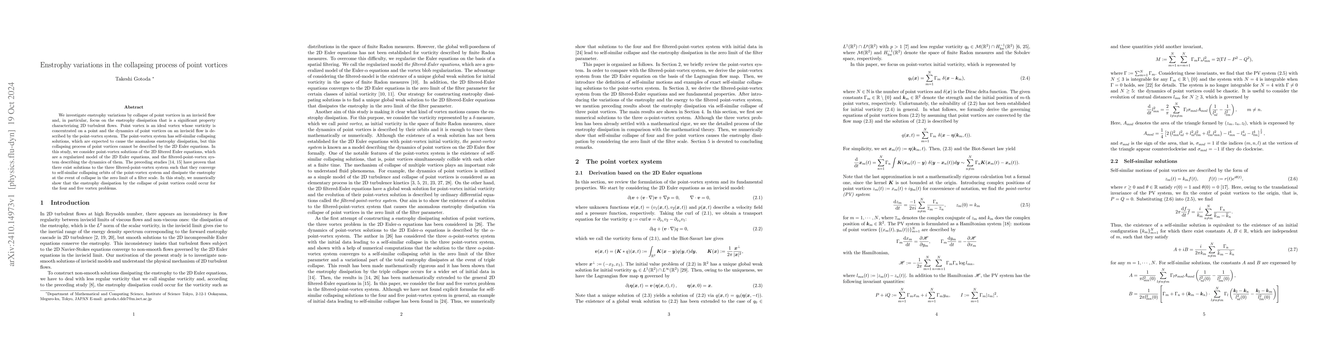 This study numerically examines enstrophy variations and dissipation during the collapse of point vortices in inviscid flows, focusing on the dynamics of a filtered-point-vortex system derived from the 2D filtered Euler equations. The research demonstrates enstrophy dissipation in four and five vortex problems during their collapse.