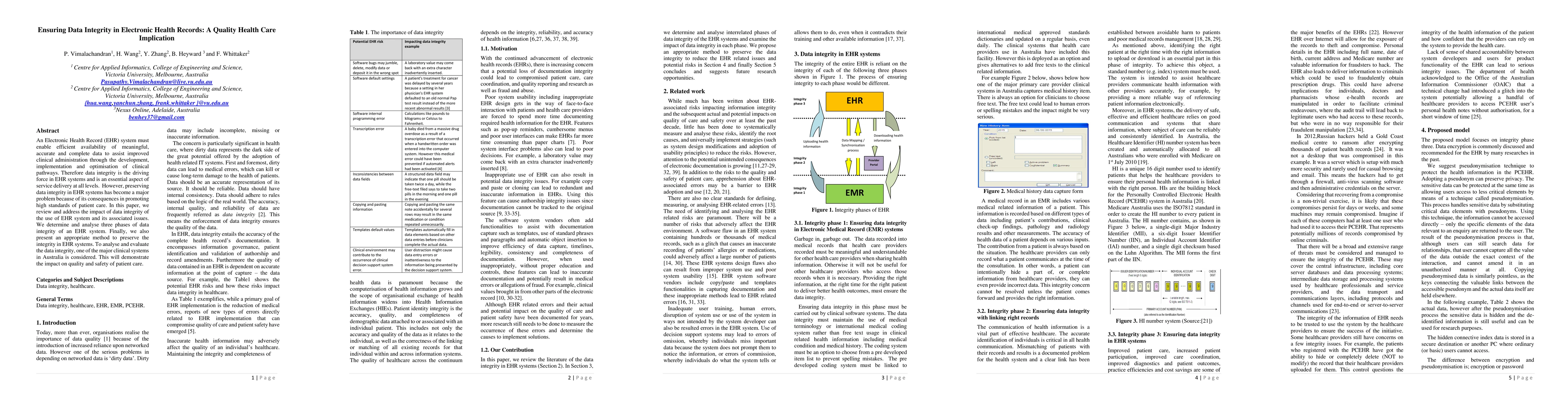 This paper reviews the critical role of data integrity in Electronic Health Record (EHR) systems, emphasizing its importance for high-quality patient care. It analyzes three phases of data integrity and proposes a method to preserve it, using a major Australian clinical system to demonstrate its impact on patient care quality and safety.