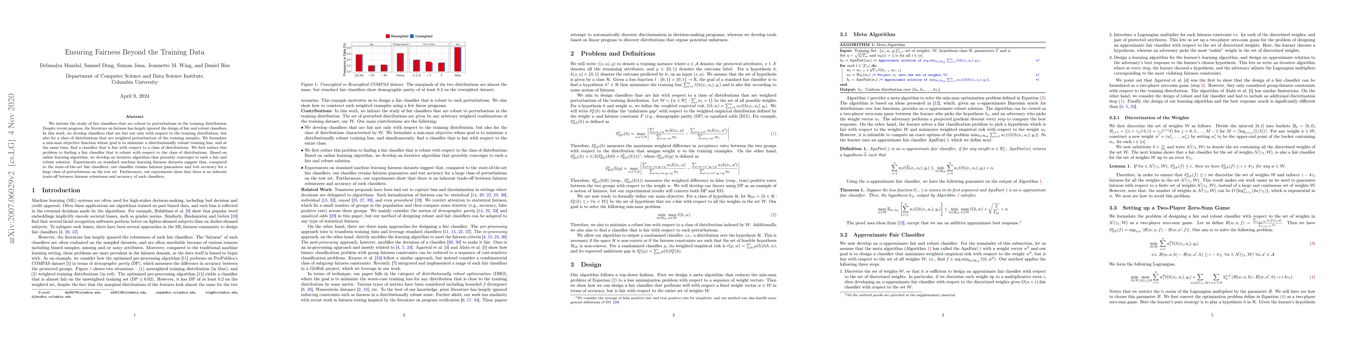 This paper develops a new approach to creating fair classifiers that can withstand perturbations in training data, while maintaining fairness guarantees across various distributions. Experiments show that these classifiers retain fairness and accuracy even when tested on perturbed test sets.