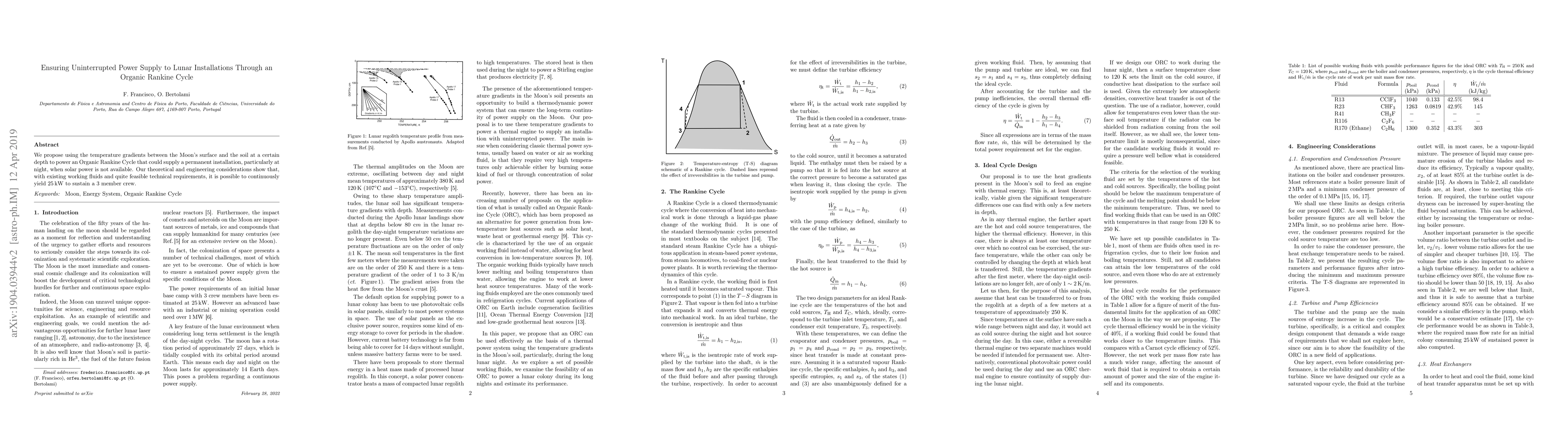 This paper proposes harnessing lunar subsurface temperature gradients to power an Organic Rankine Cycle, providing a continuous $25\,{\rm kW}$ supply for a lunar installation, especially during the night when solar power is unavailable. Feasibility studies suggest this approach can sustain a three-member crew.