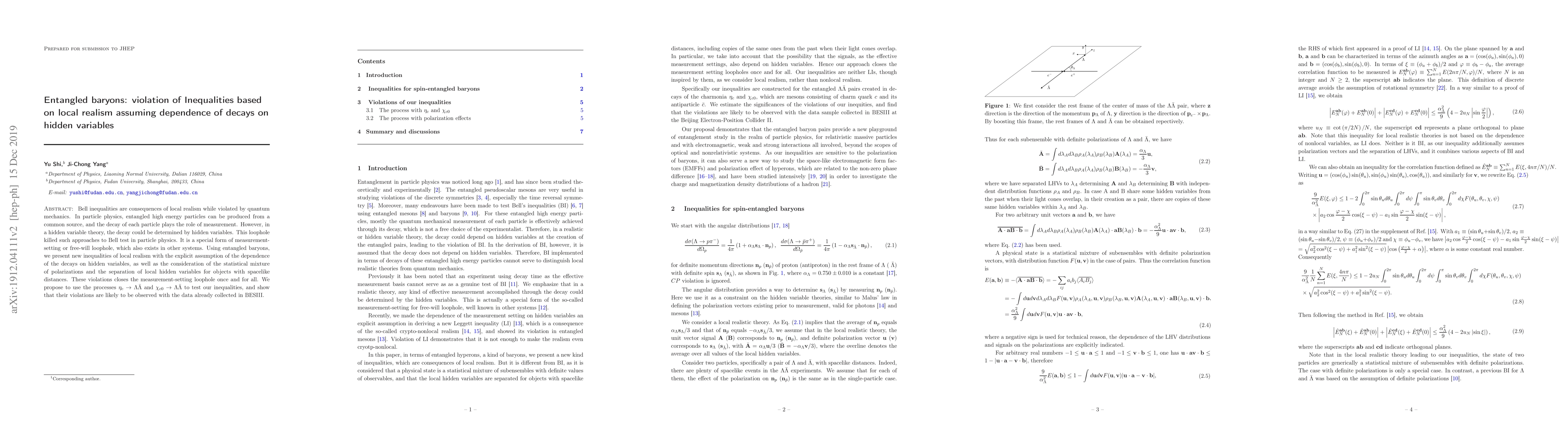 Bell inequalities are consequences of local realism while violated by quantum mechanics. In particle physics, entangled high energy particles can be produced from a common source, and the decay of each particle plays the role of measurement. However, in a hidden variable theory, the decay could be determined by hidden variables. This loophole killed such approaches to Bell test in particle physics. It is a special form of measurement-setting or free-will loophole, which also exists in other systems. Using entangled baryons, we present new inequalities of local realism with the explicit assumption of the dependence of the decays on hidden variables, as well as the consideration of the statistical mixture of polarizations and the separation of local hidden variables for objects with spacelike distances. These violations closes the measurement-setting loophole once and for all. We propose to use the processes $\eta _c\to \Lambda \bar{\Lambda}$ and $\chi _{c0} \to \Lambda \bar{\Lambda}$ to test our inequalities, and show that their violations are likely to be observed with the data already collected in BESIII.