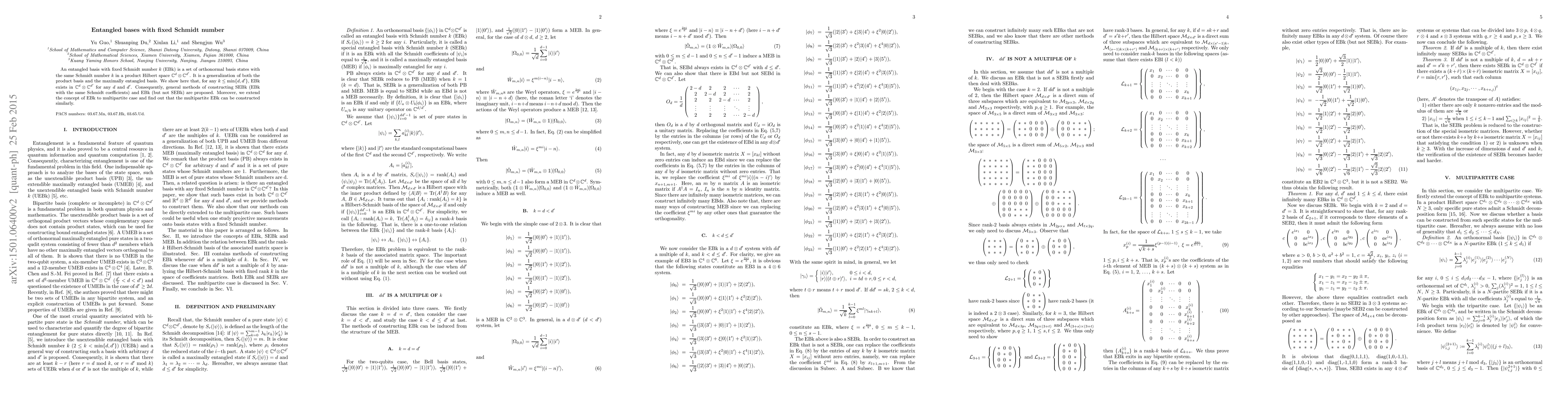 This paper demonstrates the existence of entangled bases with fixed Schmidt number $k$ (EBk) in $\mathbb{C}^d\otimes\mathbb{C}^{d'}$ for any $d$ and $d'$, where $k \leq \min\{d,d'\}$. The authors propose methods for constructing both EBk with identical Schmidt coefficients and general EBk, and extend the concept to multipartite systems.