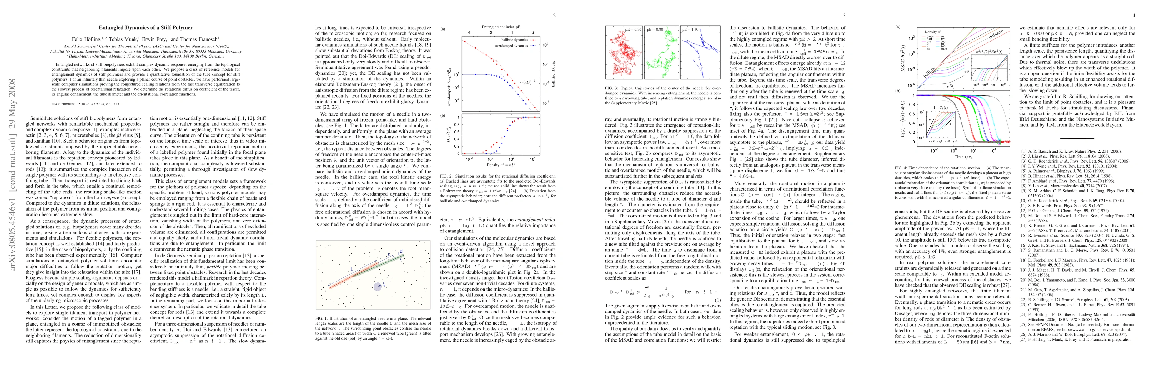 Entangled networks of stiff biopolymers exhibit complex dynamic response, emerging from the topological constraints that neighboring filaments impose upon each other. We propose a class of reference models for entanglement dynamics of stiff polymers and provide a quantitative foundation of the tube concept for stiff polymers. For an infinitely thin needle exploring a planar course of point obstacles, we have performed large-scale computer simulations proving the conjectured scaling relations from the fast transverse equilibration to the slowest process of orientational relaxation. We determine the rotational diffusion coefficient of the tracer, its angular confinement, the tube diameter and the orientational correlation functions.