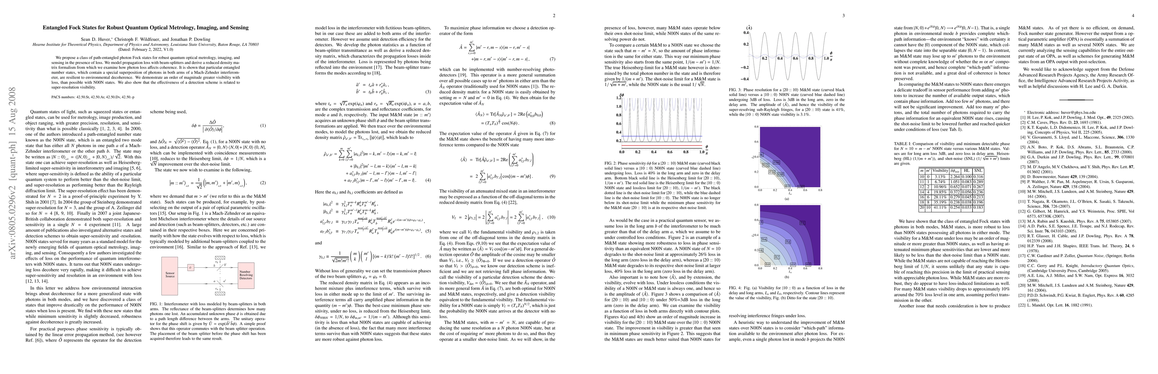 This paper proposes path-entangled photon Fock states for robust quantum optical metrology, imaging, and sensing, demonstrating resilience to loss and achieving an order of magnitude greater visibility compared to N00N states, while linking detection scheme effectiveness to super-resolution visibility.