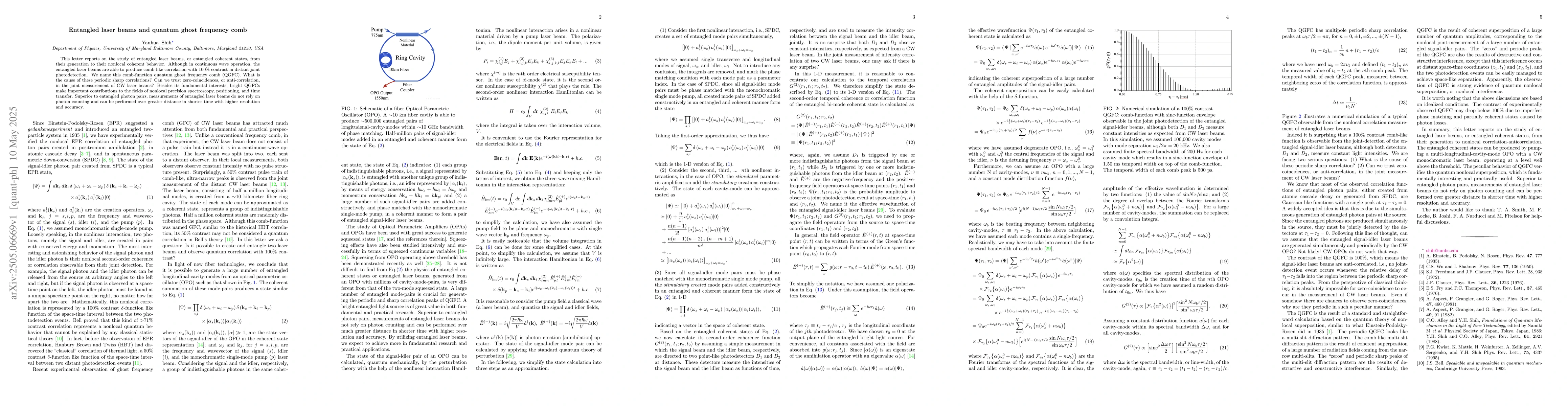 The paper describes the generation and study of entangled laser beams, focusing on their nonlocal coherent behavior and the creation of a 'quantum ghost frequency comb' (QGFC) with 100% contrast in distant joint photodetection.