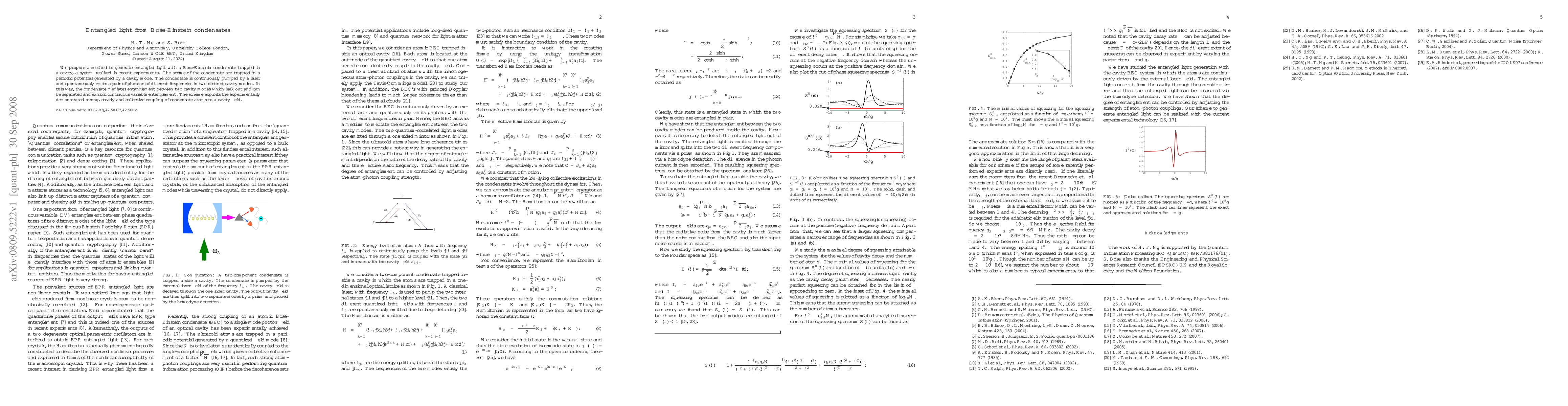Researchers propose a method to generate entangled light from a Bose-Einstein condensate trapped in a cavity, leveraging the strong coupling of atoms to a cavity field.
