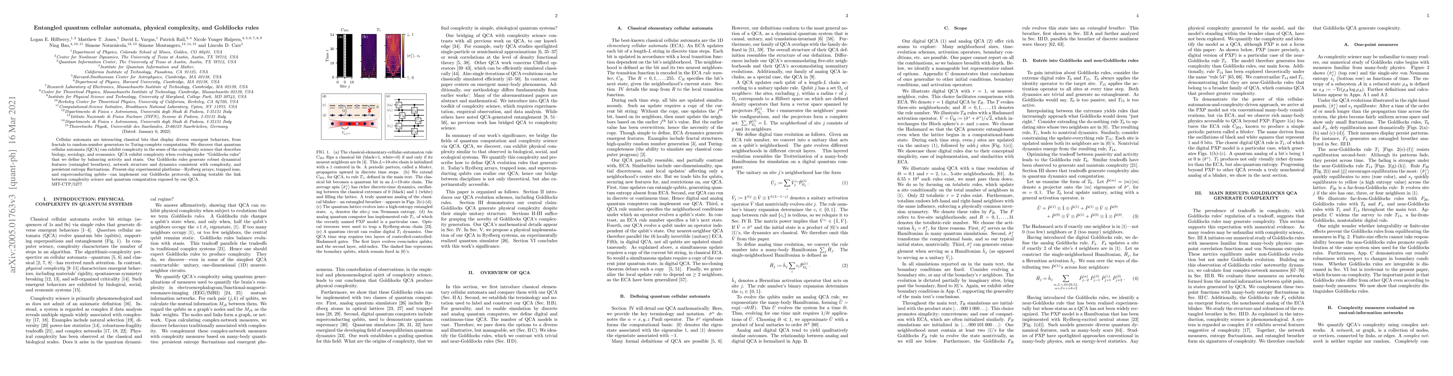 This paper explores how quantum cellular automata (QCA) can embody complexity akin to biological and social systems, particularly when governed by "Goldilocks rules" balancing activity and stasis. These rules lead to entangled dynamics and persistent entropy fluctuations, suggesting a link between complexity science and quantum computation that can be tested using current experimental platforms.