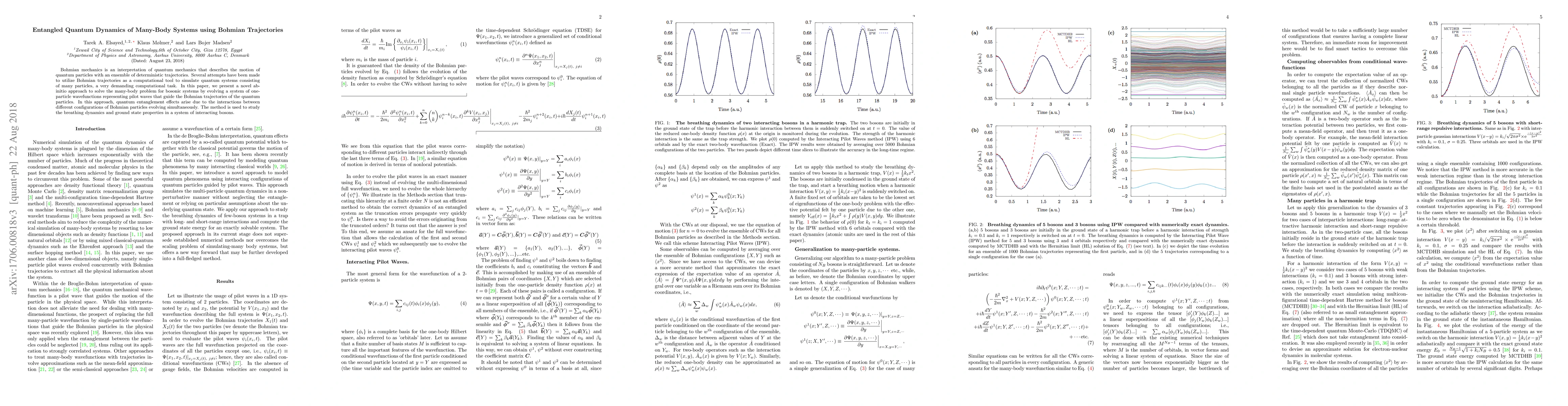 Researchers develop a new method to simulate many-body systems using Bohmian mechanics, allowing for the study of quantum entanglement effects in bosonic systems. The approach uses ab-initio methods to evolve pilot waves guiding Bohmian trajectories, enabling simulations of breathing dynamics and ground state properties.
