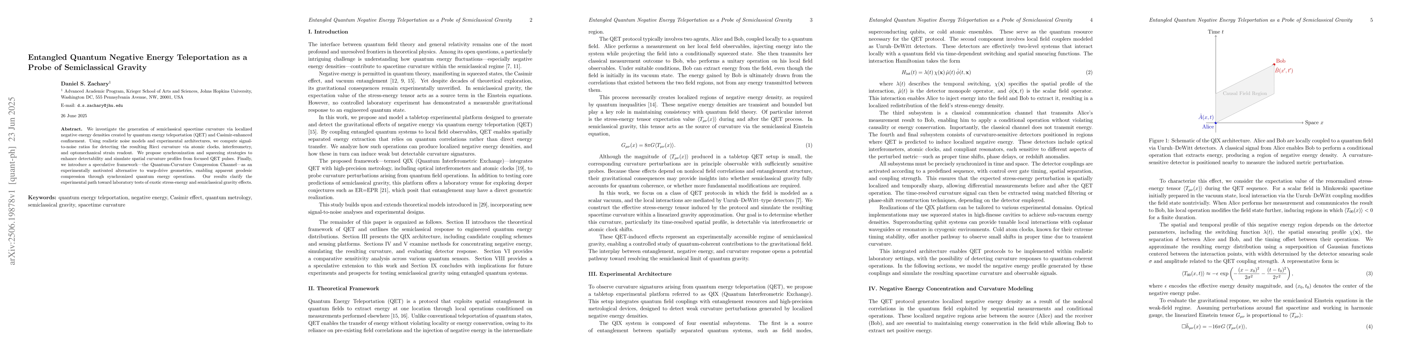 We investigate the generation of semiclassical spacetime curvature via localized negative energy densities created by quantum energy teleportation (QET) and Casimir-enhanced confinement. Using realistic noise models and experimental architectures, we compute signal-to-noise ratios for detecting the resulting Ricci curvature via atomic clocks, interferometry, and optomechanical strain readout. We propose synchronization and squeezing strategies to enhance detectability and simulate spatial curvature profiles from focused QET pulses. Finally, we introduce a speculative framework -- the Quantum-Curvature Compression Channel -- as an experimentally motivated alternative to warp-drive geometries, enabling apparent geodesic compression through synchronized quantum energy operations. Our results clarify the experimental path toward laboratory tests of exotic stress-energy and semiclassical gravity effects.