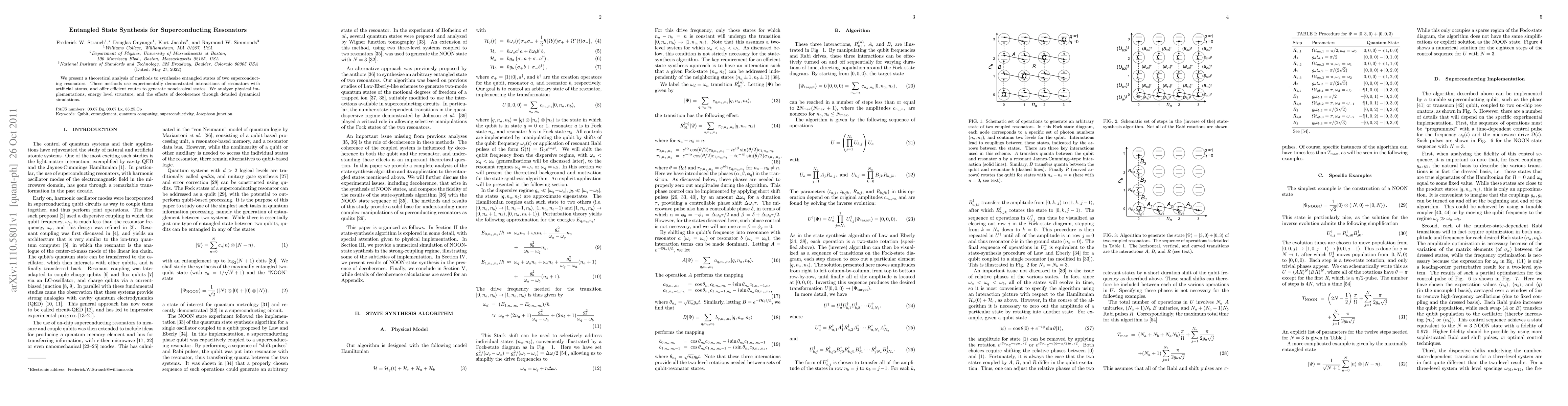 This paper explores theoretical methods for synthesizing entangled states in superconducting resonators using interactions with artificial atoms, providing efficient routes for generating nonclassical states and analyzing their physical implementations, energy structures, and decoherence effects via detailed simulations.
