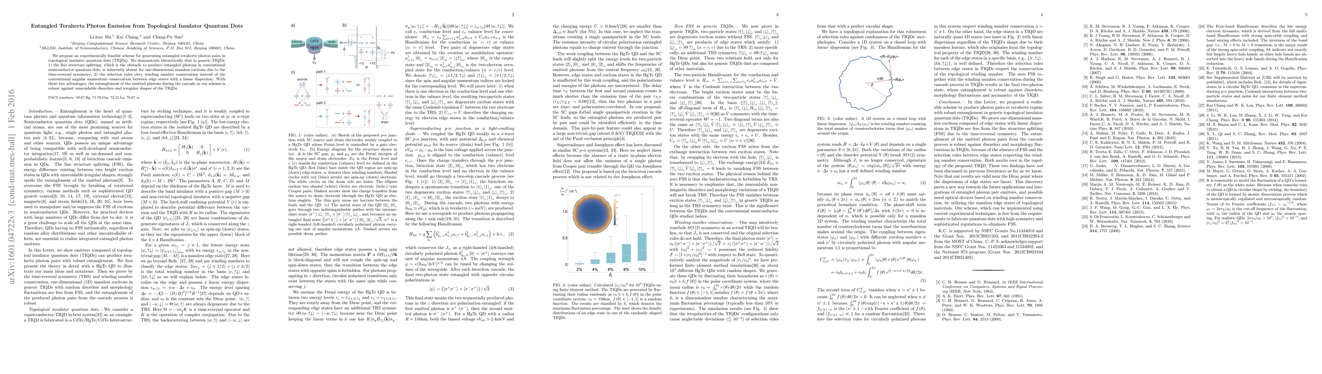 Researchers propose a method for generating entangled terahertz photon pairs in topological insulator quantum dots, leveraging the unique properties of one-dimensional massless excitons to overcome obstacles found in conventional semiconductor systems.