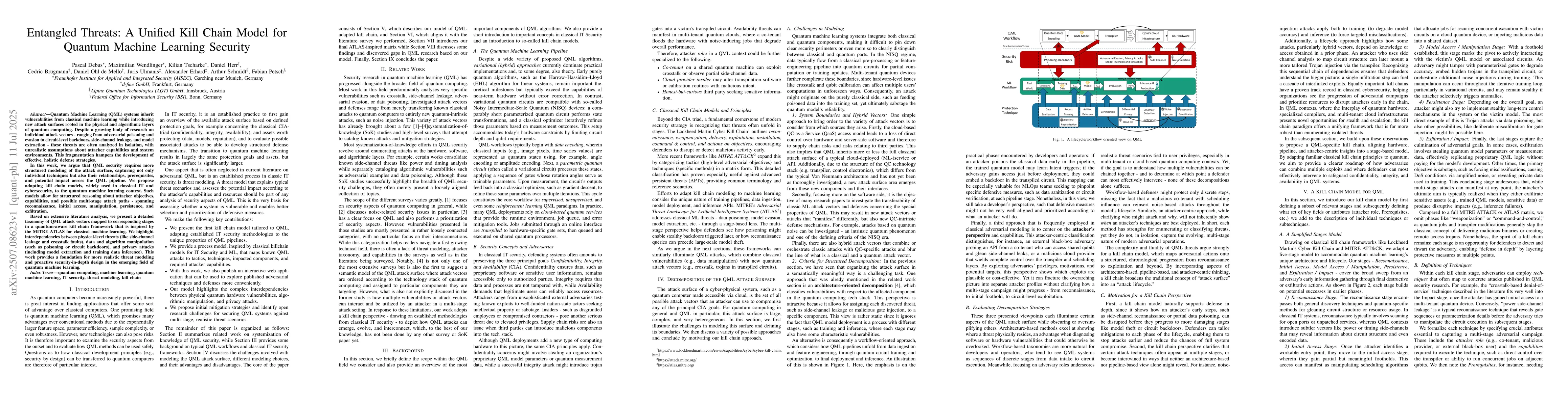 Quantum Machine Learning (QML) systems inherit vulnerabilities from classical machine learning while introducing new attack surfaces rooted in the physical and algorithmic layers of quantum computing. Despite a growing body of research on individual attack vectors - ranging from adversarial poisoning and evasion to circuit-level backdoors, side-channel leakage, and model extraction - these threats are often analyzed in isolation, with unrealistic assumptions about attacker capabilities and system environments. This fragmentation hampers the development of effective, holistic defense strategies. In this work, we argue that QML security requires more structured modeling of the attack surface, capturing not only individual techniques but also their relationships, prerequisites, and potential impact across the QML pipeline. We propose adapting kill chain models, widely used in classical IT and cybersecurity, to the quantum machine learning context. Such models allow for structured reasoning about attacker objectives, capabilities, and possible multi-stage attack paths - spanning reconnaissance, initial access, manipulation, persistence, and exfiltration. Based on extensive literature analysis, we present a detailed taxonomy of QML attack vectors mapped to corresponding stages in a quantum-aware kill chain framework that is inspired by the MITRE ATLAS for classical machine learning. We highlight interdependencies between physical-level threats (like side-channel leakage and crosstalk faults), data and algorithm manipulation (such as poisoning or circuit backdoors), and privacy attacks (including model extraction and training data inference). This work provides a foundation for more realistic threat modeling and proactive security-in-depth design in the emerging field of quantum machine learning.