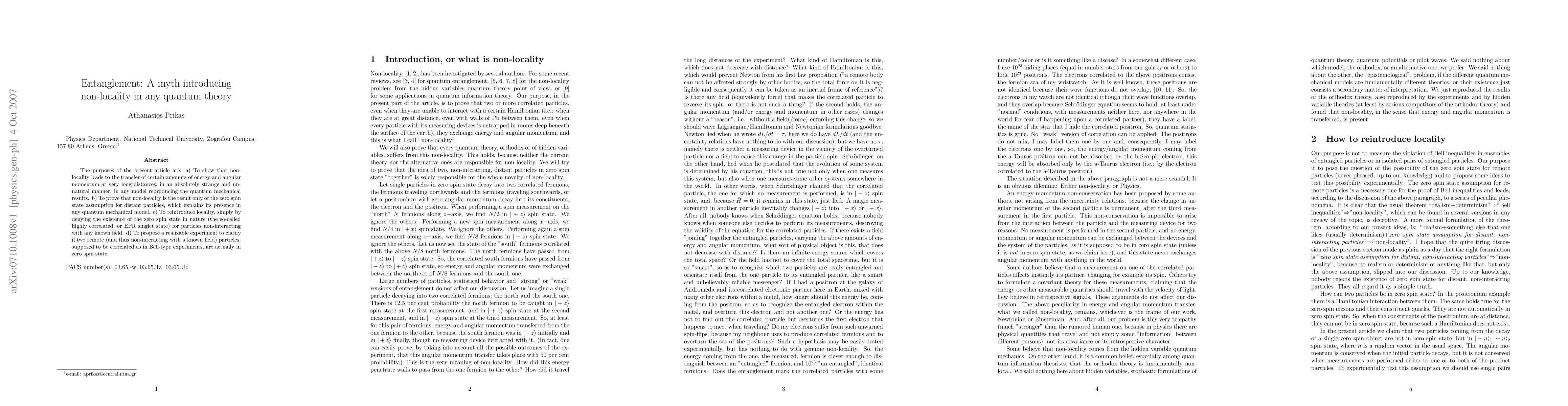 The purposes of the present article are: a) To show that non-locality leads to the transfer of certain amounts of energy and angular momentum at very long distances, in an absolutely strange and unnatural manner, in any model reproducing the quantum mechanical results. b) To prove that non-locality is the result only of the zero spin state assumption for distant particles, which explains its presence in any quantum mechanical model. c) To reintroduce locality, simply by denying the existence of the zero spin state in nature (the so-called highly correlated, or EPR singlet state) for particles non-interacting with any known field. d) To propose a realizable experiment to clarify if two remote (and thus non-interacting with a known field) particles, supposed to be correlated as in Bell-type experiments, are actually in zero spin state.