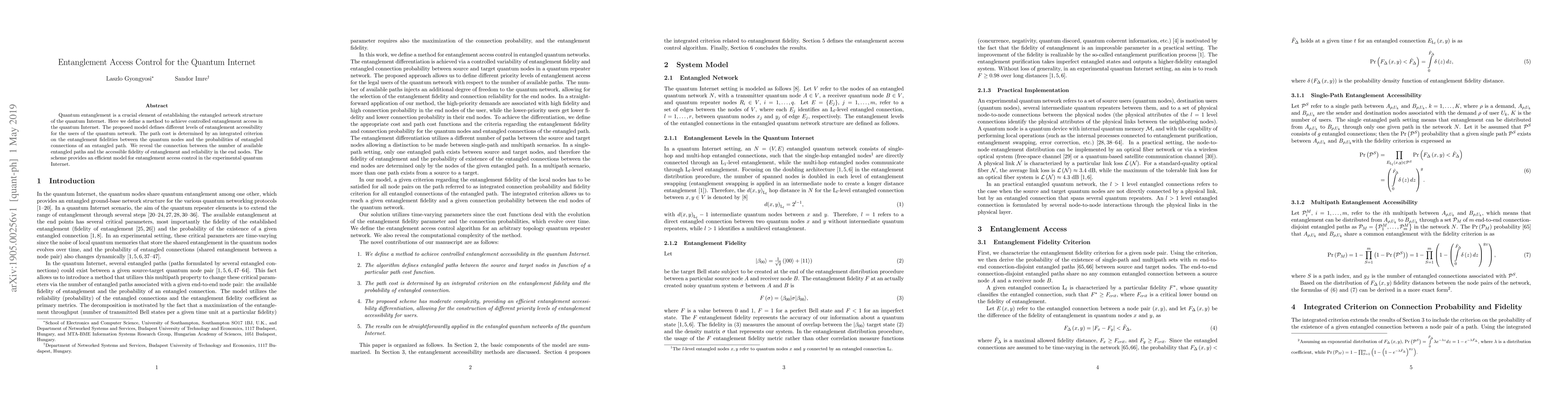 This paper proposes a method for controlled access to quantum entanglement in the quantum Internet, defining different levels of accessibility based on entanglement fidelities and connection probabilities. It reveals the relationship between available entangled paths and the fidelity and reliability of end nodes, offering an efficient model for entanglement access control.