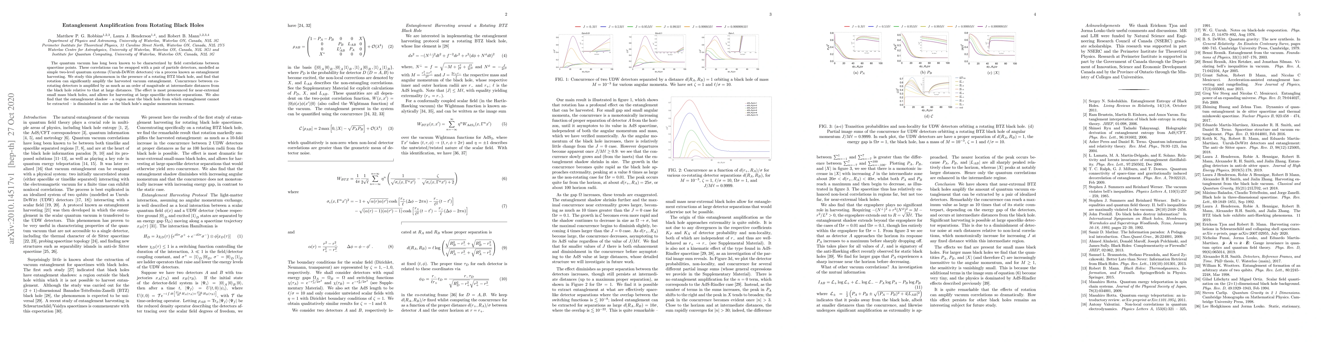 This paper investigates how rotating BTZ black holes can amplify entanglement harvested from quantum vacuum correlations using Unruh-DeWitt detectors. The study finds that the rotation significantly enhances the entanglement, especially for near-extremal small mass black holes, reducing the entanglement shadow and allowing for harvesting at large spacelike separations.