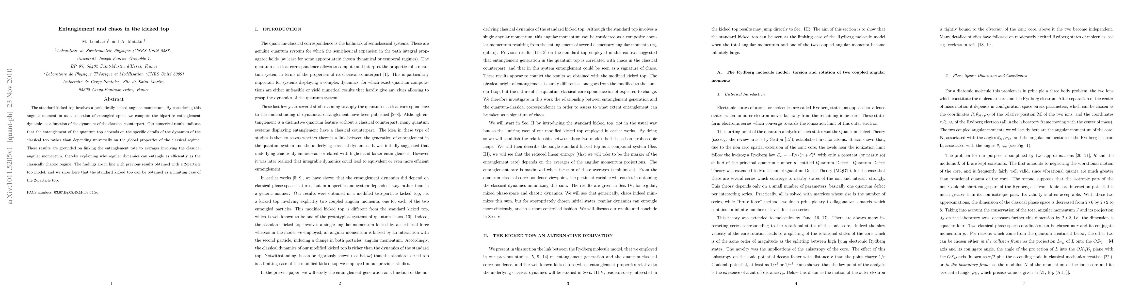 The standard kicked top involves a periodically kicked angular momentum. By considering this angular momentum as a collection of entangled spins, we compute the bipartite entanglement dynamics as a function of the dynamics of the classical counterpart. Our numerical results indicate that the entanglement of the quantum top depends on the specific details of the dynamics of the classical top rather than depending universally on the global properties of the classical regime. These results are grounded on linking the entanglement rate to averages involving the classical angular momentum, thereby explaining why regular dynamics can entangle as efficiently as the classically chaotic regime. The findings are in line with previous results obtained with a 2-particle top model, and we show here that the standard kicked top can be obtained as a limiting case of the 2-particle top.