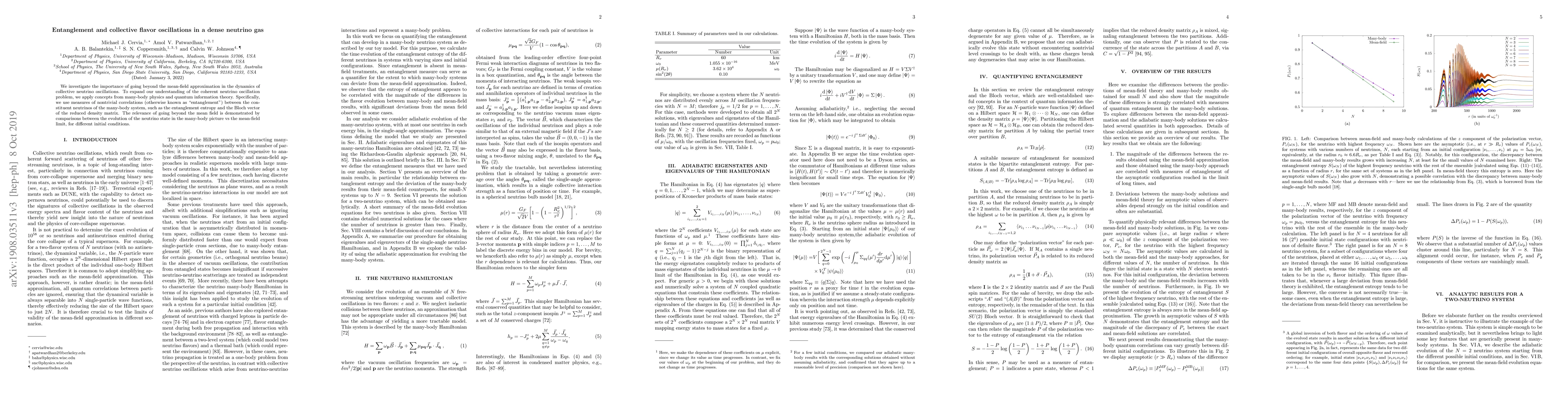 This paper explores the dynamics of collective neutrino oscillations in a dense neutrino gas, emphasizing the significance of entanglement and nontrivial correlations beyond the mean-field approximation. It employs measures from quantum information theory to compare the evolution of neutrino states in a many-body system versus the mean-field limit.