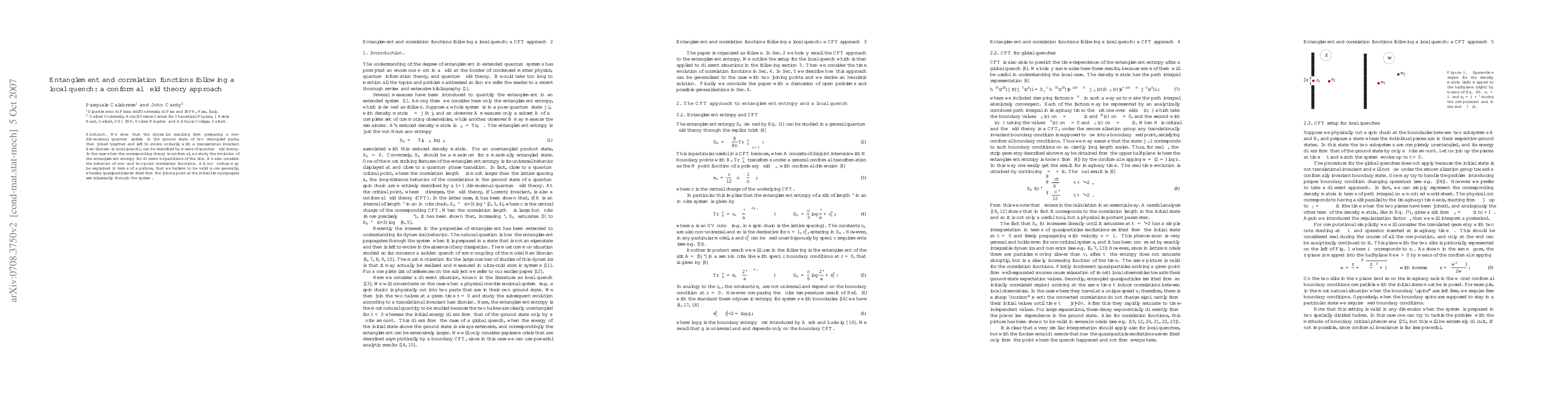 We show that the dynamics resulting from preparing a one-dimensional quantum system in the ground state of two decoupled parts, then joined together and left to evolve unitarily with a translational invariant Hamiltonian (a local quench), can be described by means of quantum field theory. In the case when the corresponding theory is conformal, we study the evolution of the entanglement entropy for different bi-partitions of the line. We also consider the behavior of one- and two-point correlation functions. All our findings may be explained in terms of a picture, that we believe to be valid more generally, whereby quasiparticles emitted from the joining point at the initial time propagate semiclassically through the system.