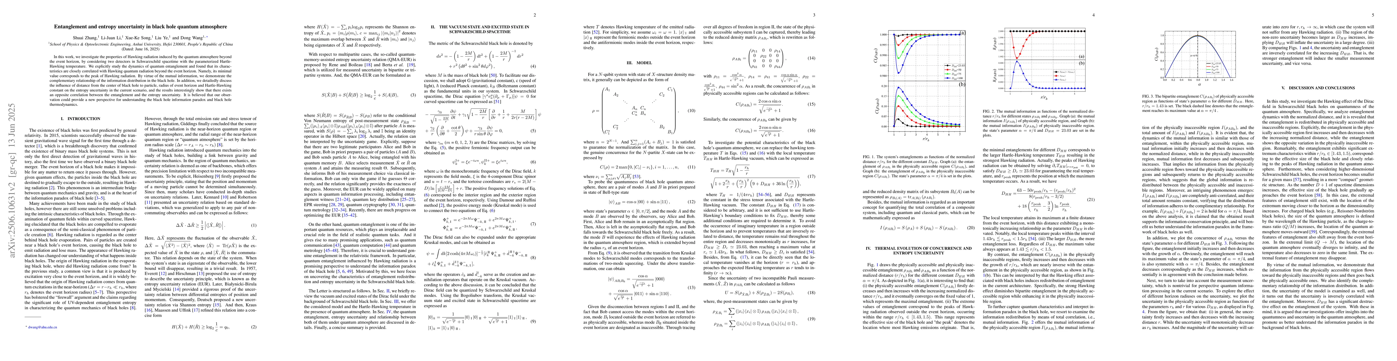 This research explores the connection between quantum entanglement, Hawking radiation, and black hole entropy, revealing an opposite correlation between entanglement and entropy uncertainty that could shed light on the black hole information paradox.