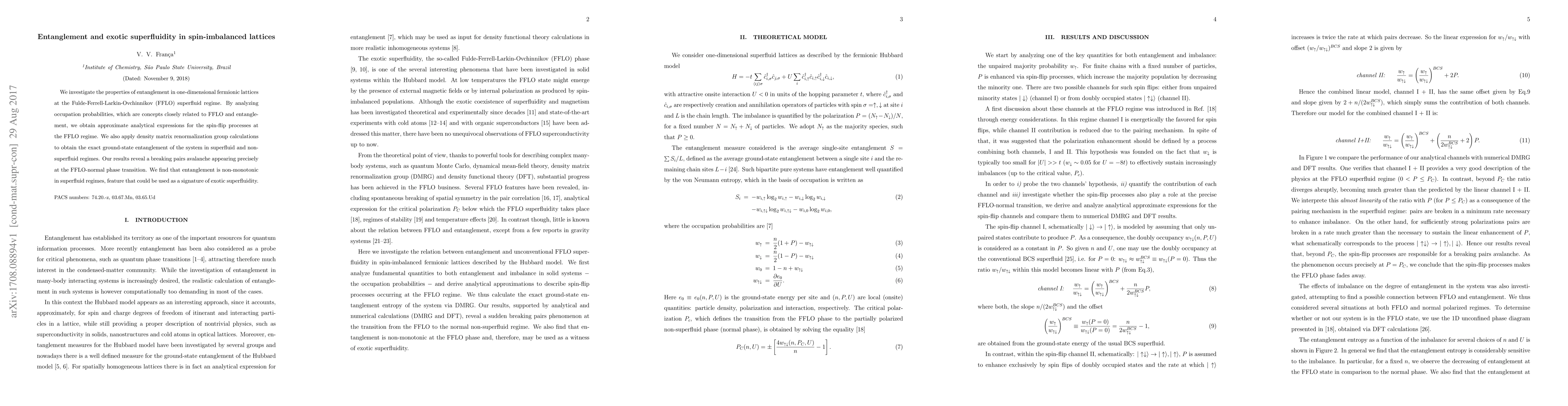 We investigate the properties of entanglement in one-dimensional fermionic lattices at the Fulde-Ferrell-Larkin-Ovchinnikov (FFLO) superfluid regime. By analyzing occupation probabilities, which are concepts closely related to FFLO and entanglement, we obtain approximate analytical expressions for the spin-flip processes at the FFLO regime. We also apply density matrix renormalization group calculations to obtain the exact ground-state entanglement of the system in superfluid and non-superfluid regimes. Our results reveal a breaking pairs avalanche appearing precisely at the FFLO-normal phase transition. We find that entanglement is non-monotonic in superfluid regimes, feature that could be used as a signature of exotic superfluidity.