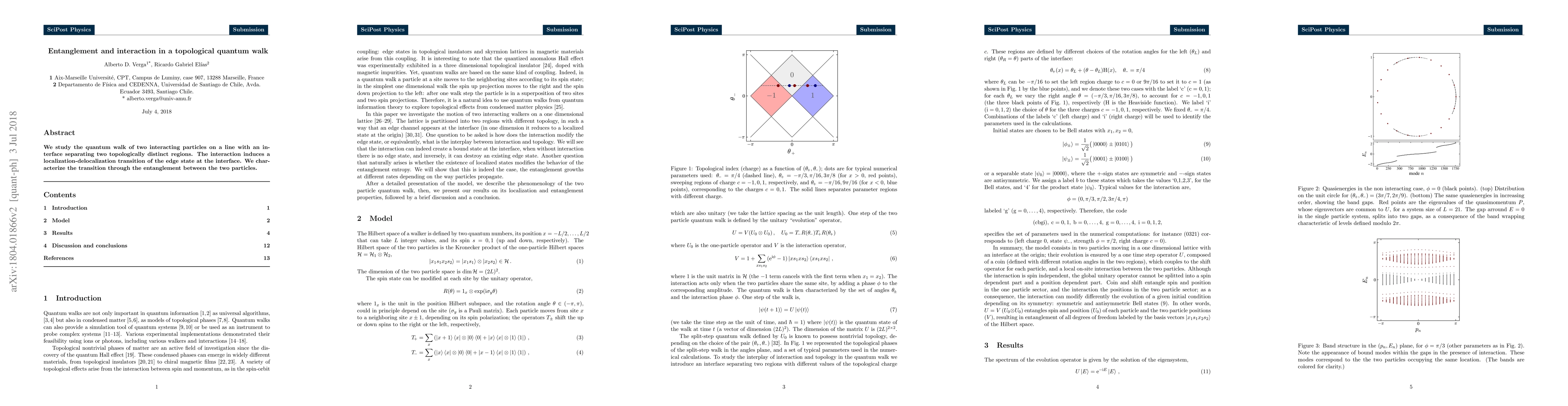 We study the quantum walk of two interacting particles on a line with an interface separating two topologically distinct regions. The interaction induces a localization-delocalization transition of the edge state at the interface. We characterize the transition through the entanglement between the two particles.