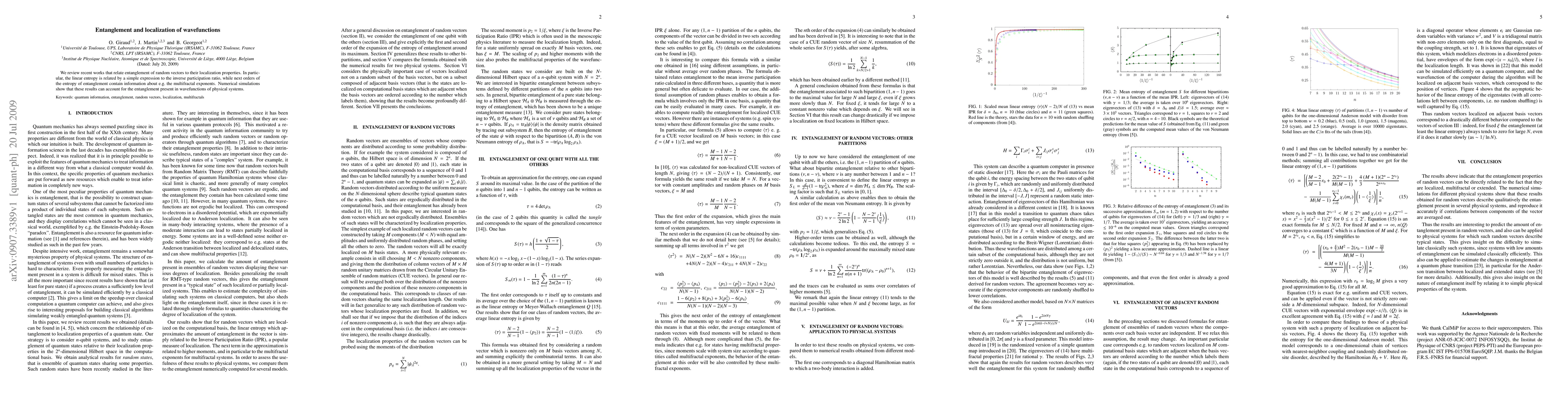 This paper reviews recent findings linking entanglement in random vectors to their localization properties, showing that linear entropy correlates with the inverse participation ratio, and higher-order entanglement measures reveal details like multifractal exponents. Numerical simulations validate these relationships for wavefunctions in physical systems.