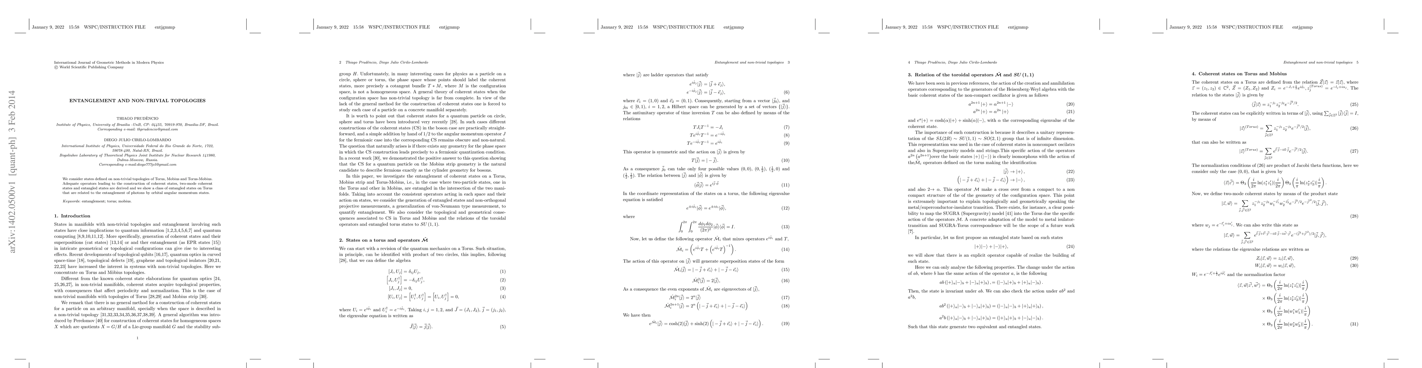 This paper explores states on non-trivial topologies like Torus, Mobius, and Torus-Mobius, deriving operators for coherent and entangled states. It identifies a class of entangled states on Torus linked to the entanglement of photons via orbital angular momentum.