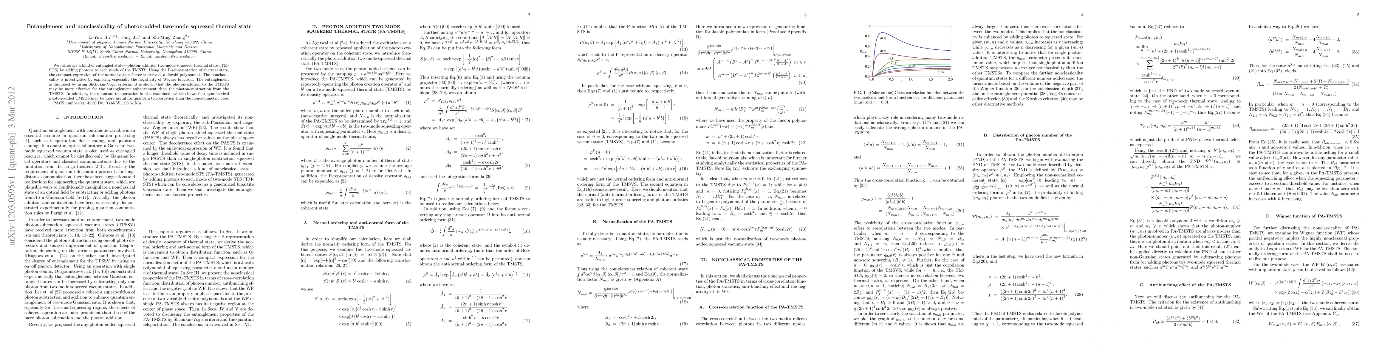 This paper introduces photon-added two-mode squeezed thermal states (TMSTS) and investigates their nonclassicality and entanglement using the Shchukin-Vogel criteria and Wigner function negativity. It finds that photon addition enhances entanglement more effectively than subtraction, and symmetrical photon-added TMSTS is more beneficial for quantum teleportation.