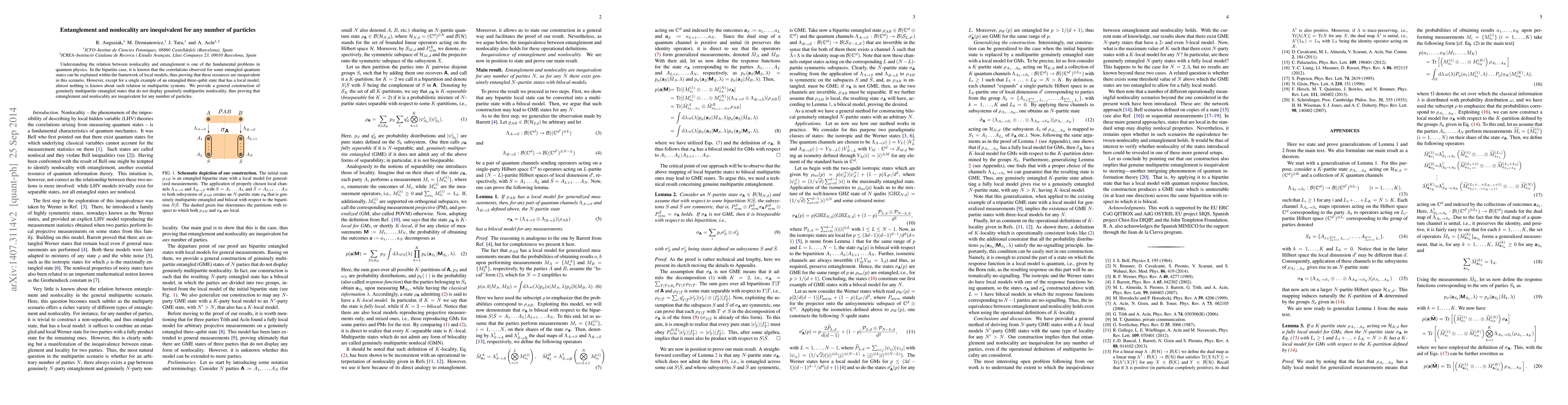 Research proves that entanglement and nonlocality are distinct concepts in quantum physics, with entanglement being a resource that cannot be replicated within local models, regardless of the number of particles involved.