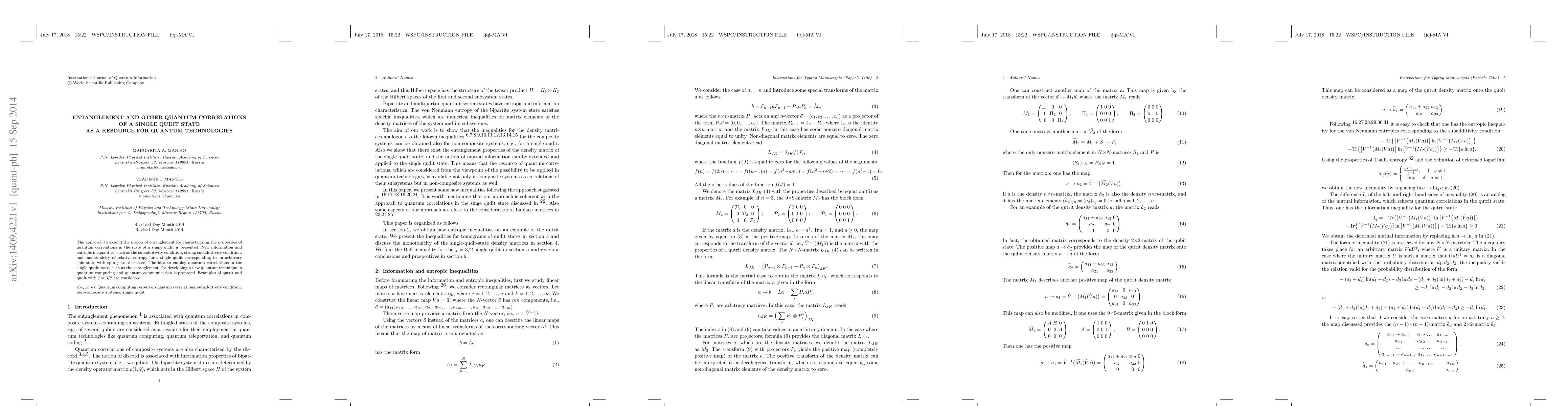 This paper extends the concept of entanglement to characterize quantum correlations in a single qudit state, proposing new entropic inequalities and suggesting the use of these correlations for advancements in quantum computing and communication. Examples with qutrit and qudit states of spin j = 3/2 illustrate the potential applications.