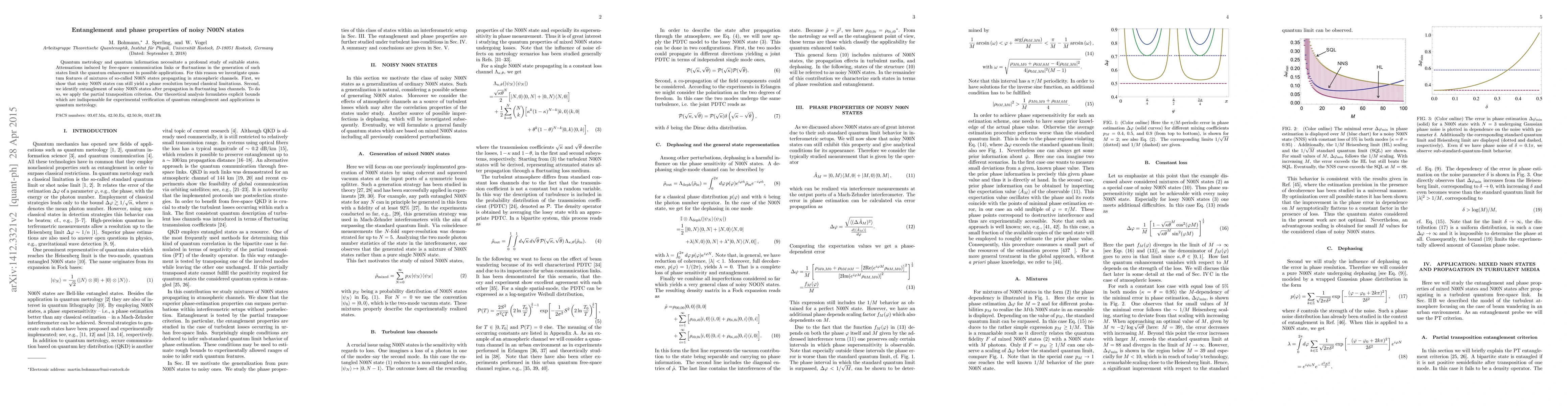 This paper investigates the quantum features of noisy N00N states affected by atmospheric channel fluctuations, demonstrating that they can still surpass classical phase resolution limits. It also identifies entanglement in these noisy states using the partial transposition criterion, providing theoretical bounds crucial for experimental verification and quantum metrology applications.