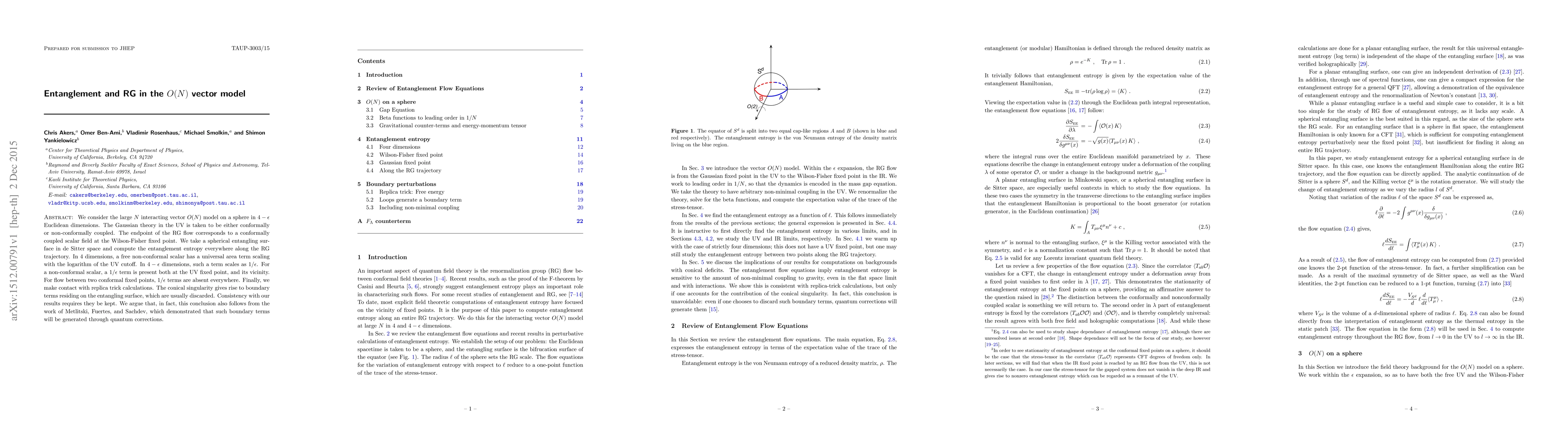 We consider the large $N$ interacting vector $O(N)$ model on a sphere in $4-\epsilon$ Euclidean dimensions. The Gaussian theory in the UV is taken to be either conformally or non-conformally coupled. The endpoint of the RG flow corresponds to a conformally coupled scalar field at the Wilson-Fisher fixed point. We take a spherical entangling surface in de Sitter space and compute the entanglement entropy everywhere along the RG trajectory. In $4$ dimensions, a free non-conformal scalar has a universal area term scaling with the logarithm of the UV cutoff. In $4-\epsilon$ dimensions, such a term scales as $1/\epsilon$. For a non-conformal scalar, a $1/\epsilon$ term is present both at the UV fixed point, and its vicinity. For flow between two conformal fixed points, $1/\epsilon$ terms are absent everywhere. Finally, we make contact with replica trick calculations. The conical singularity gives rise to boundary terms residing on the entangling surface, which are usually discarded. Consistency with our results requires they be kept. We argue that, in fact, this conclusion also follows from the work of Metlitski, Fuertes, and Sachdev, which demonstrated that such boundary terms will be generated through quantum corrections.